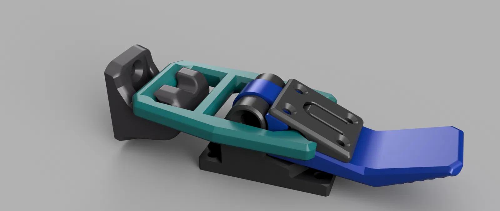 Over-Center Toggle Latch là một chốt gài giữ cửa đóng, bản hook 90° (có thể sẽ có bản 180° sau). Hướng dẫn lắp để loop vượt qua pivot cho cơ chế over-center búng khóa, kèm danh sách ốc/nut và gợi ý scale 120%.