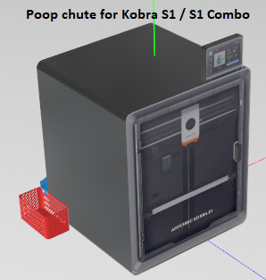 Bộ poop ramp và thùng chứa rác cho Anycubic Kobra S1 / S1 Combo. In dễ, ít support, dùng ốc zin để lắp. Có profile mới tương thích external Spool holder và vẫn chừa thoáng cho filtration fan.