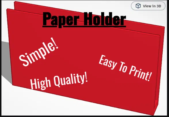 Mẫu Paper Holder giúp giữ giấy gọn gàng trên bàn làm việc. Thiết kế đơn giản, dễ in 3D, chỉ gồm 1 file và không cần support. Mọi người cứ để lại bình luận góp ý nhé.
