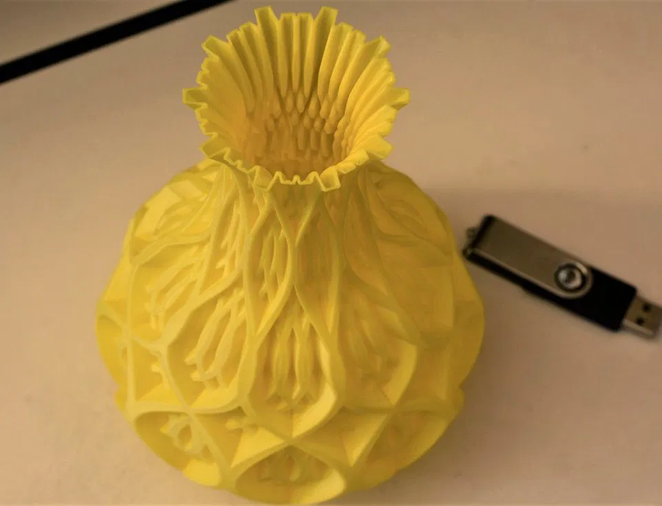Hình chụp cho thấy bình được in ở chế độ vase mode, tức là in một lớp tường (single wall). Bạn có thể in vase mode, hoặc in chế độ bình thường với 0 top layers và 0% infill, thêm 1 lớp tường (walls) trở lên để tăng độ cứng và 3 lớp đáy (bottom layers) trở lên. File STL là dạng đặc (solid). In rất ổn ở cả vase mode lẫn chế độ bình thường.