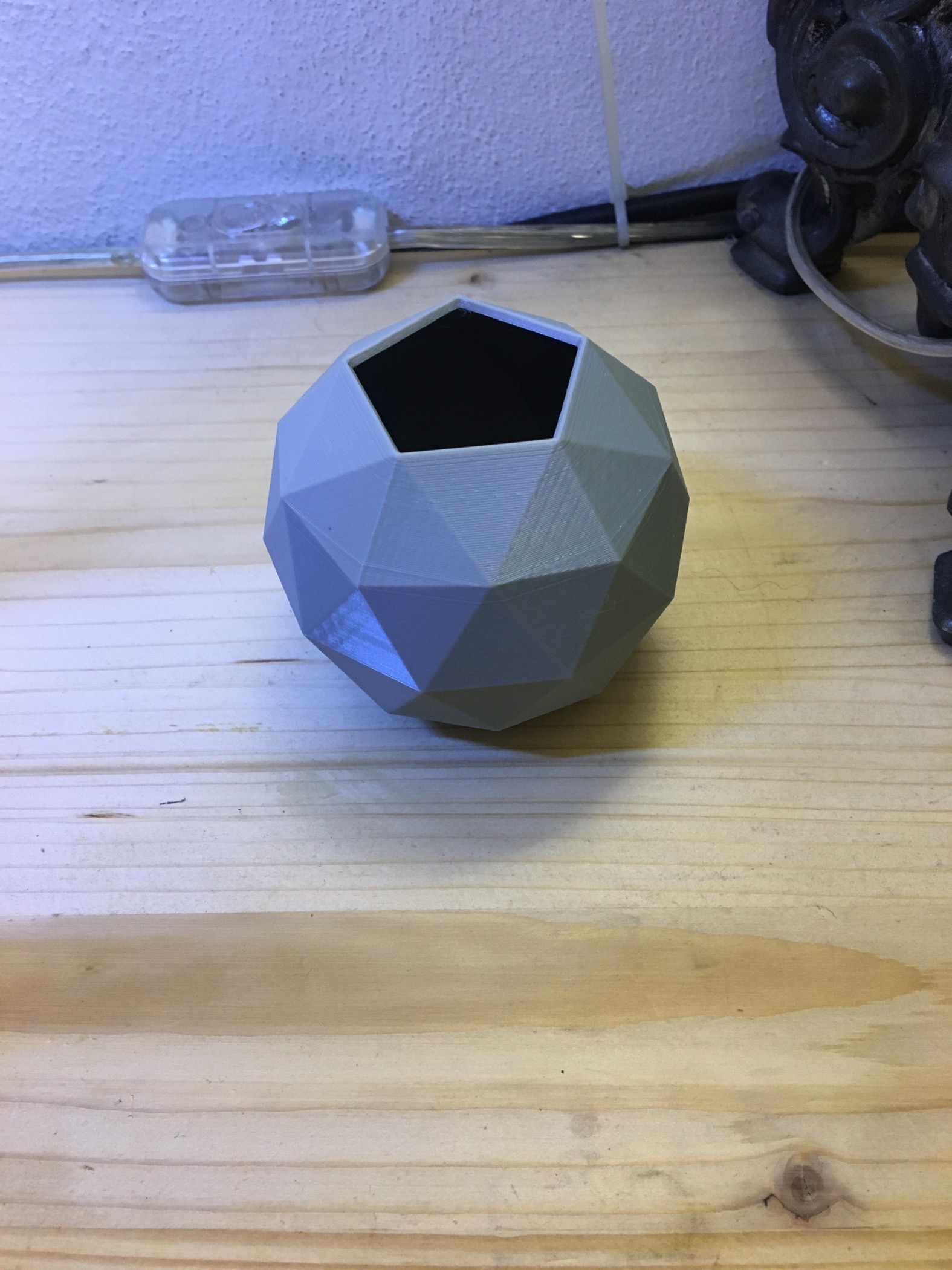 Bình này đa năng, có thể dùng làm ống cắm bút hoặc làm bình cắm cây như xương rồng hay sen đá. Phần đế ngũ giác giúp bình đứng rất vững trên bàn, còn thiết kế tam giác làm nó cực hợp để trang trí các không gian như phòng khách và nhà bếp.