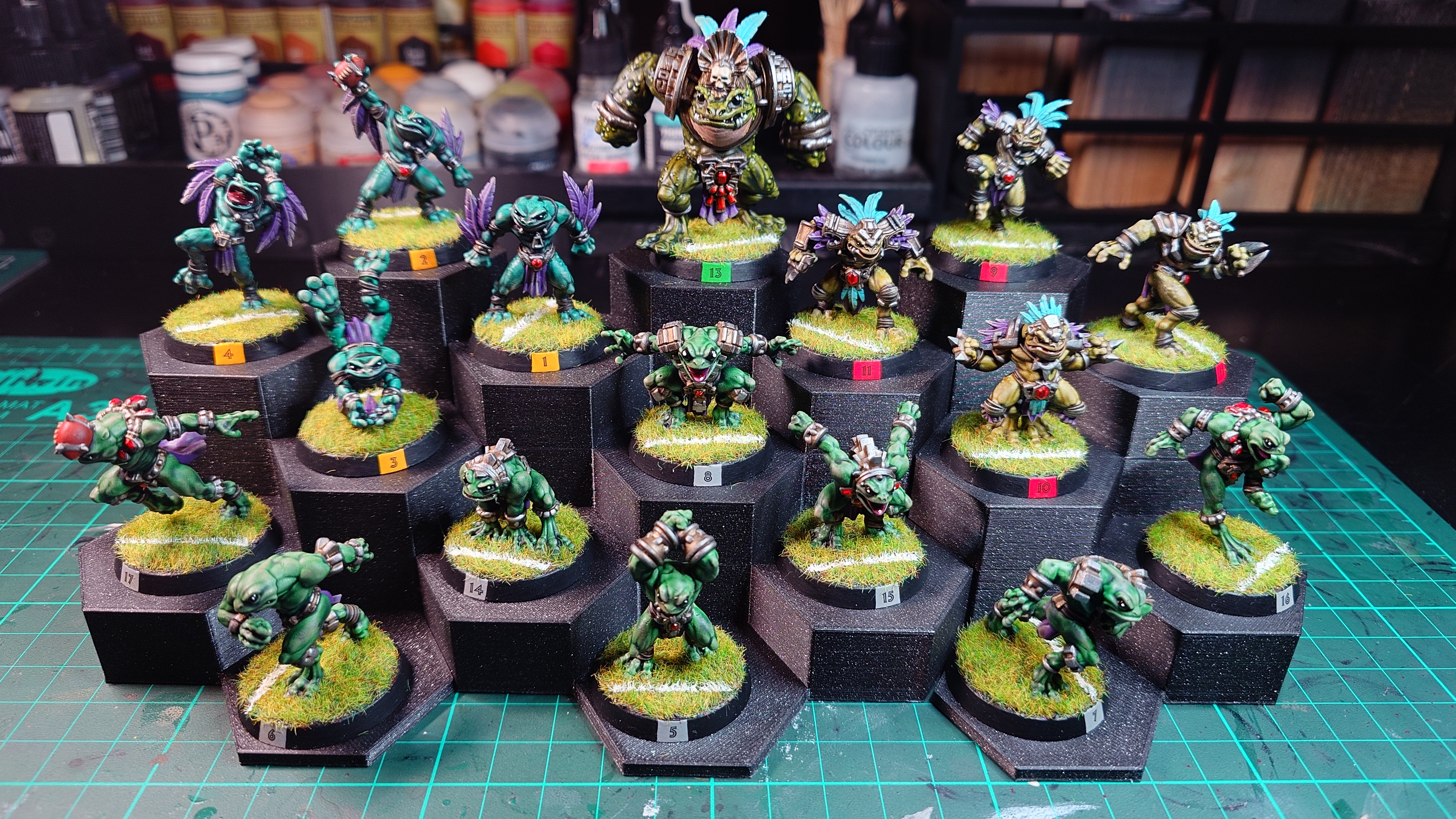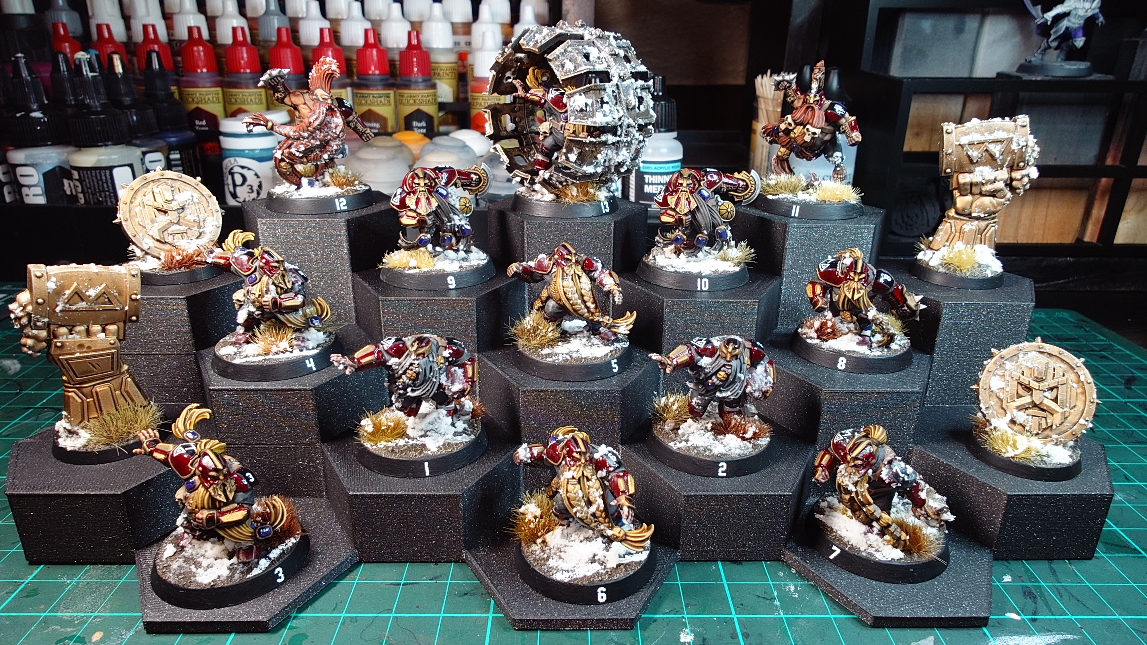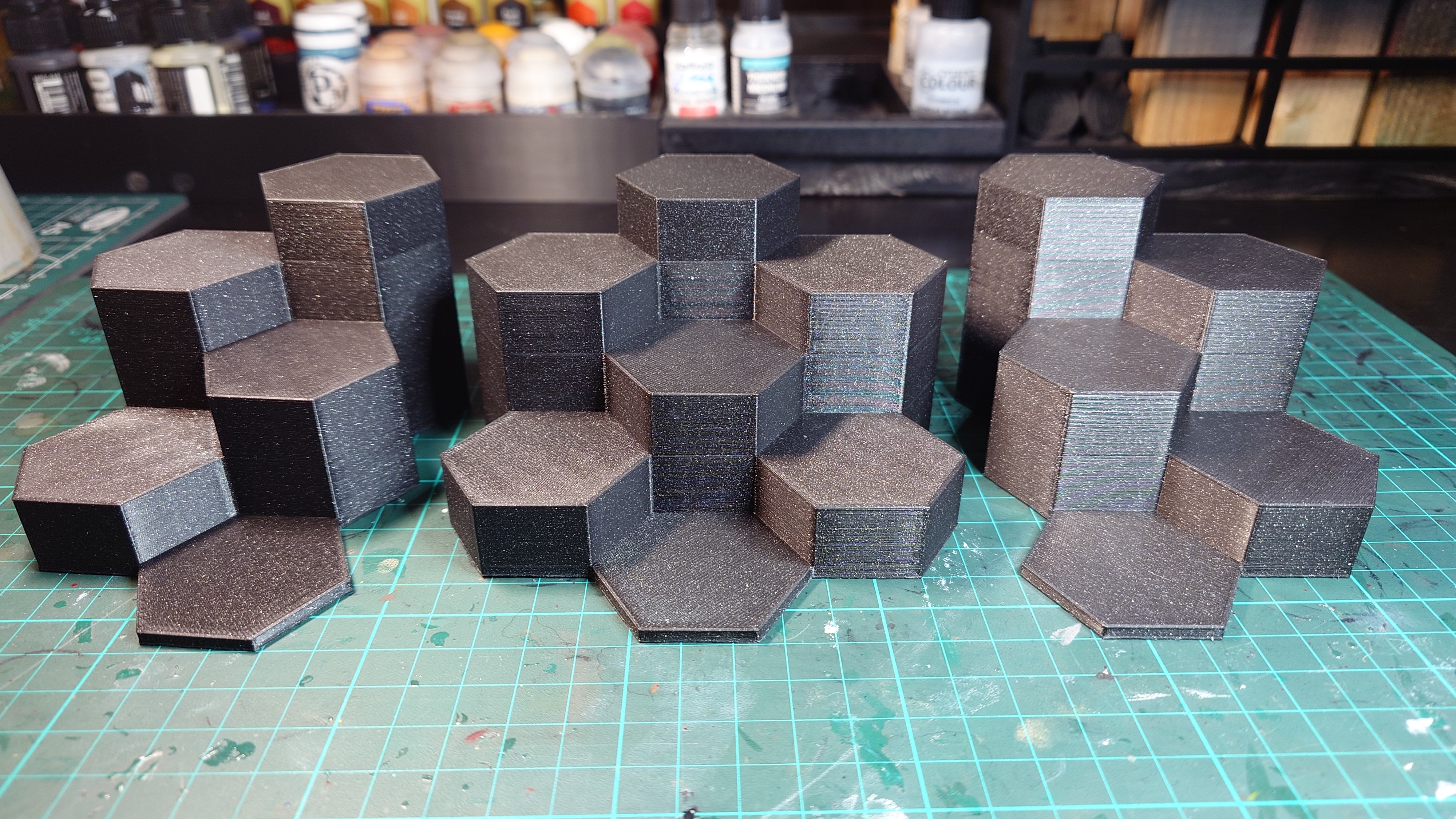 Bệ trưng bày đơn giản làm từ các khối lục giác. Kích thước được canh để hợp với đa số tỉ lệ miniature phổ biến. Các platform vừa tối đa đế 40mm.