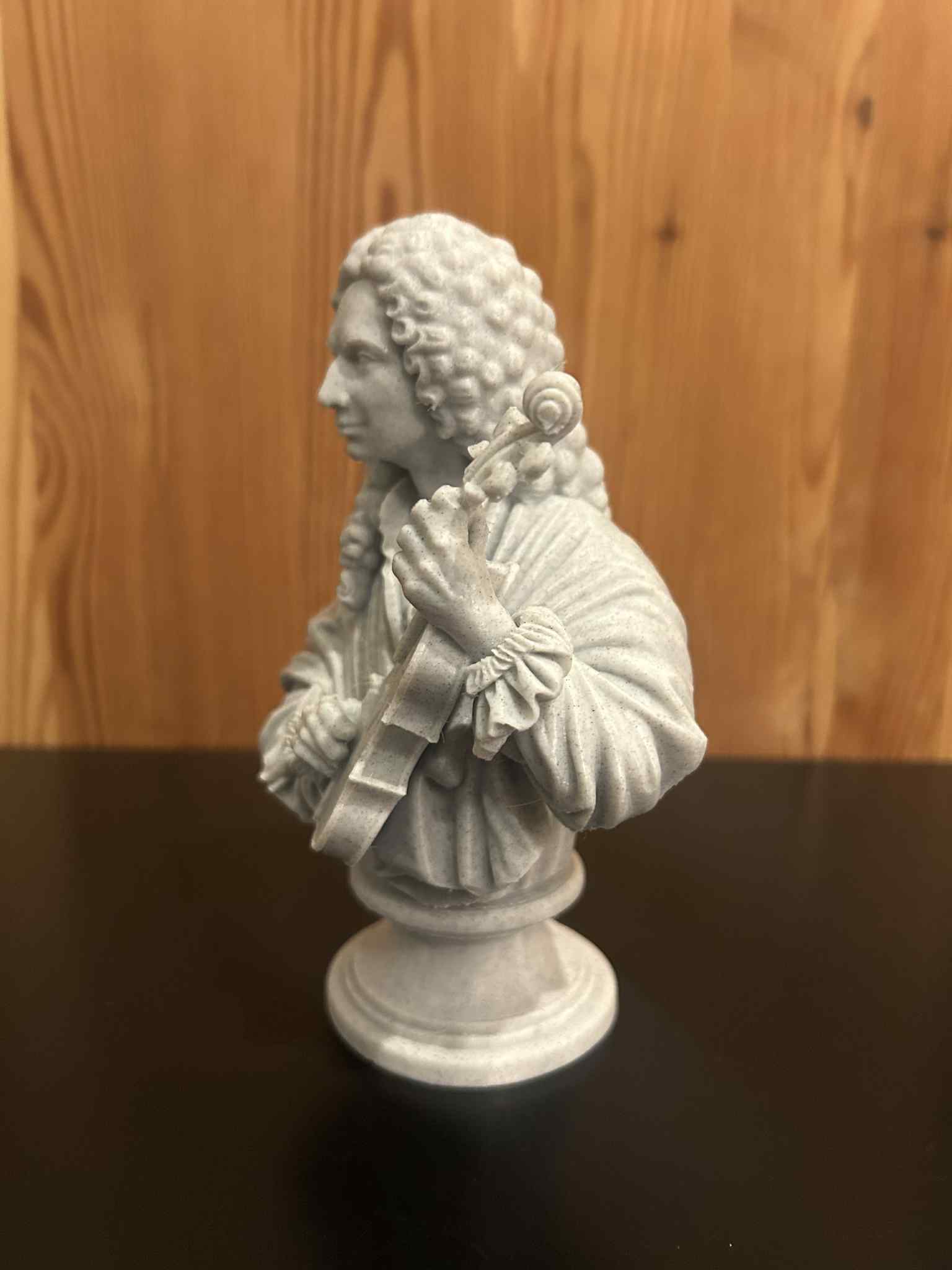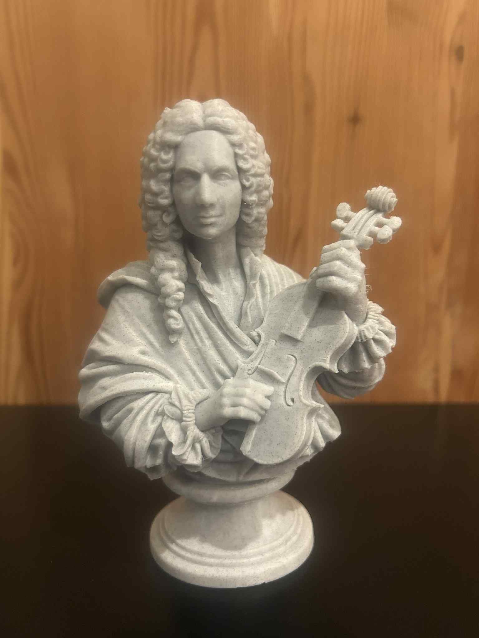 Mẫu 3D tượng bán thân Antonio Vivaldi (1678–1741) cầm violin, lấy cảm hứng từ bức chân dung nổi tiếng nhất của ông. Thiết kế chú trọng tỉ lệ cân đối, khối rõ và chi tiết biểu cảm theo phong cách tượng cổ điển.