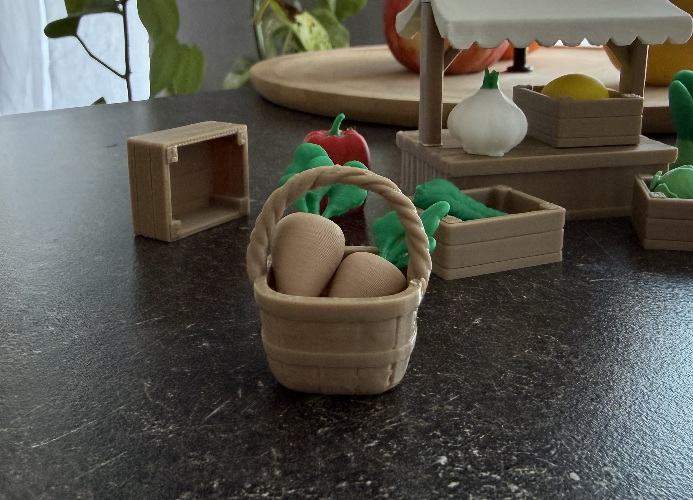 Hoàn thiện bối cảnh chợ của bạn với giỏ phong cách gỗ này — một món phụ kiện “kinh điển” lấy cảm hứng từ những chiếc giỏ thủ công truyền thống dùng để gom, cất trữ và bày biện thực phẩm. Đơn giản, chắc chắn và có duyên, chiếc giỏ mini này được thiết kế để phối rất hợp với sạp trái cây – rau củ, bộ đồ chơi nhập vai và các mô hình trang trí mang cảm giác ấm áp, tự nhiên.