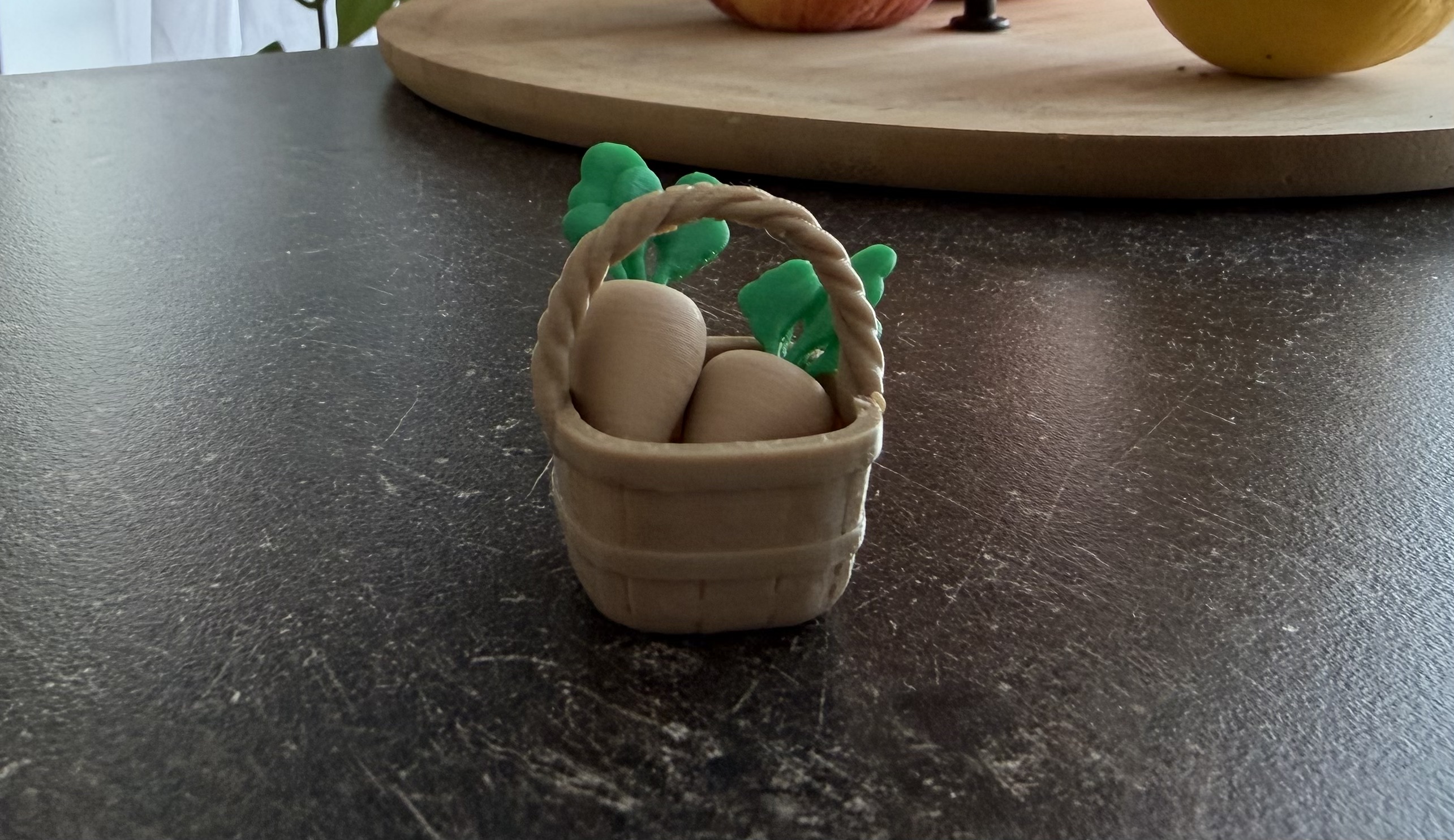 Mẫu 3D “Wooden basket” là chiếc giỏ phong cách gỗ realist, dáng bo tròn, bề mặt mịn và chi tiết tối giản giúp in ổn định. Rất hợp làm phụ kiện cho bối cảnh chợ, sạp rau củ, nhà búp bê và diorama.