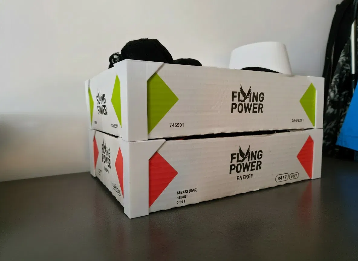 Mẫu gia cố cạnh giúp thùng carton cứng cáp hơn và xếp chồng ổn định hơn. Tương thích thùng Flying Power hoặc các loại thùng cao khoảng 8 cm. Có thể dùng thêm keo để cố định khi cần.