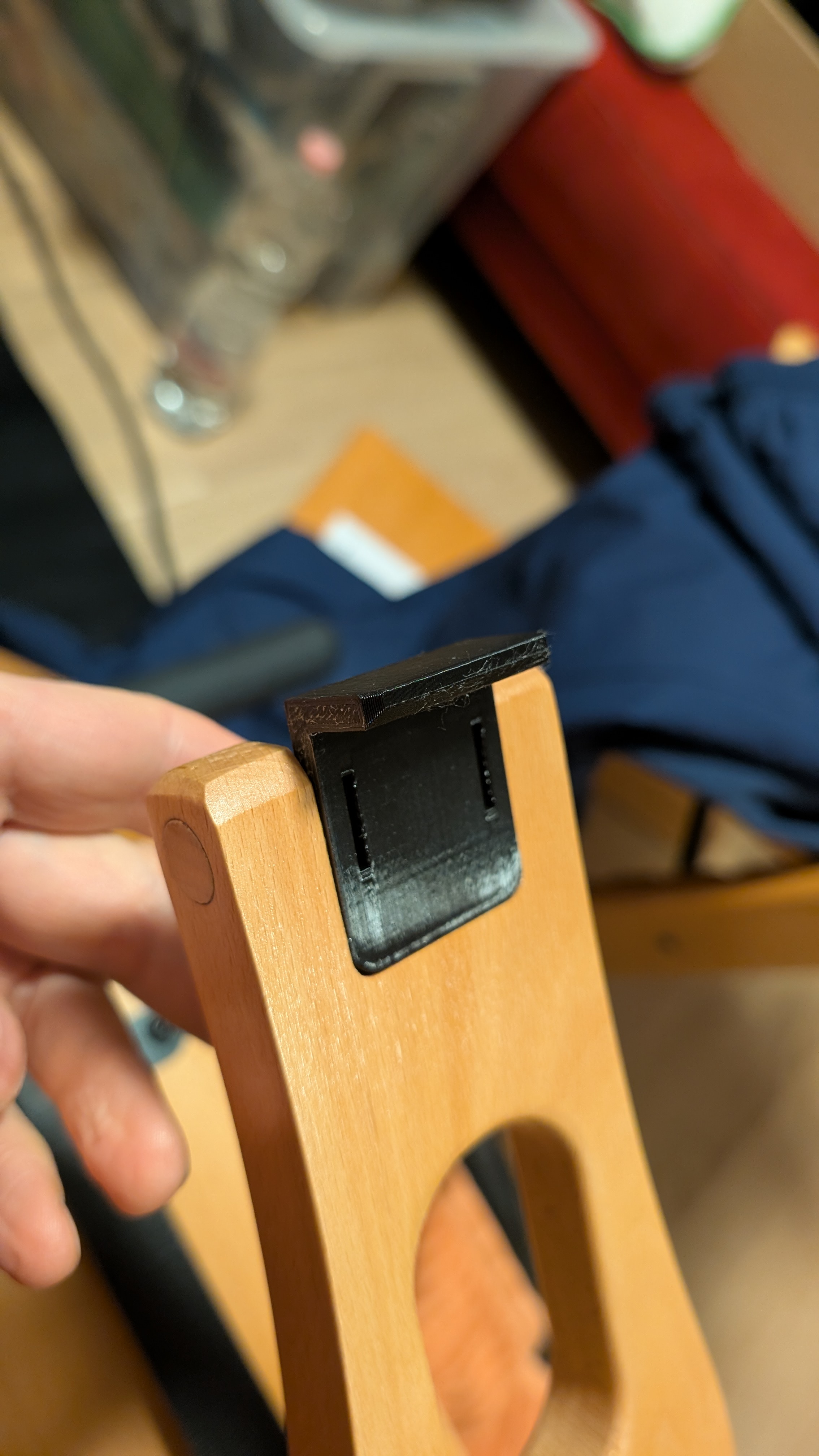 Đây là một phụ kiện gắn kèm kiêm giá đỡ cho iPad Pro 12.9" dùng với máy chèo thuyền Christopeit WP 5000. Phần giá đỡ tablet đủ sâu để chứa iPad kể cả khi đang gắn cover. Phần ngàm gắn lên máy được thiết kế để dùng dây rút velcro (hoặc dây rút thường) để cố định tại chỗ. Mình in toàn bộ bằng PETG (lúc gần xong phần giá đỡ tablet thì mình hết PETG màu đen, nên phía trên mới thành xanh đậm). Mình dùng line infill 50%.
