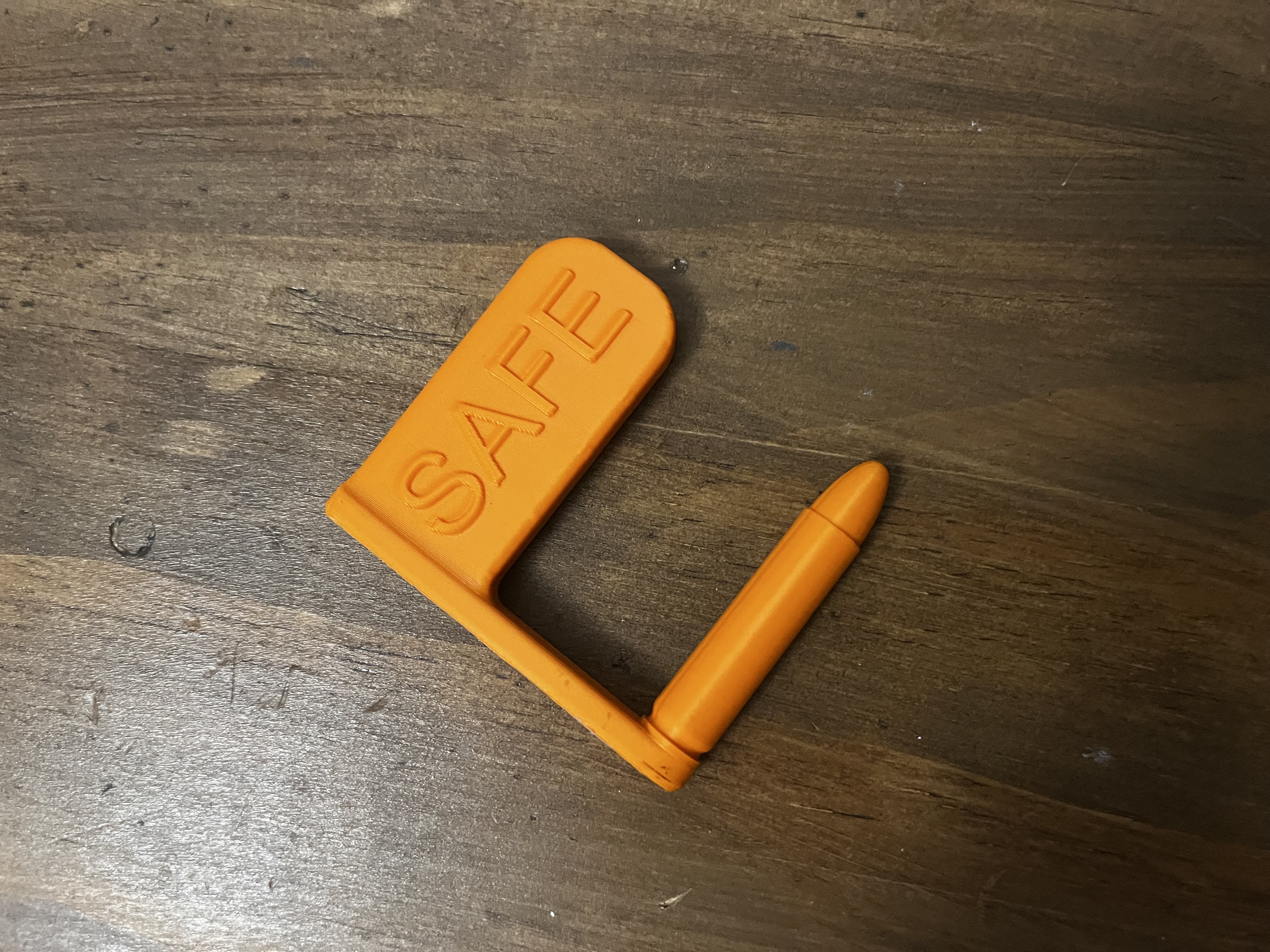 Cờ an toàn cho carbine USM1 hoặc M1 Carbine. Thiết kế làm theo đúng kích thước để lắp/chèn vào buồng đạn vừa khít, chuẩn xác.