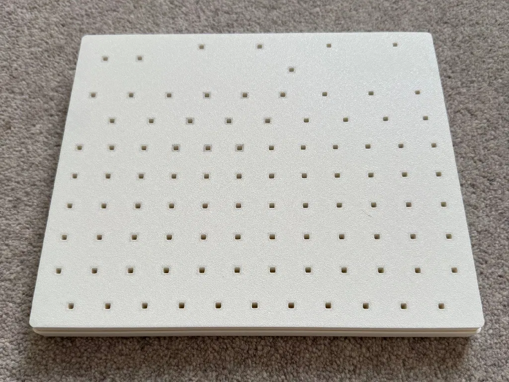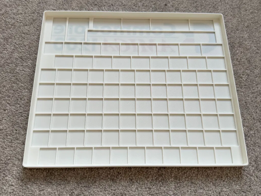 Khay có đủ chỗ cho toàn bộ keycap của Amiga 1200 layout UK. Mỗi ngăn có kẹp vuông để giữ phím và có khoảng trống cho lò xo. Ngoài ra còn có lỗ xuyên để dễ lấy keycap ra.