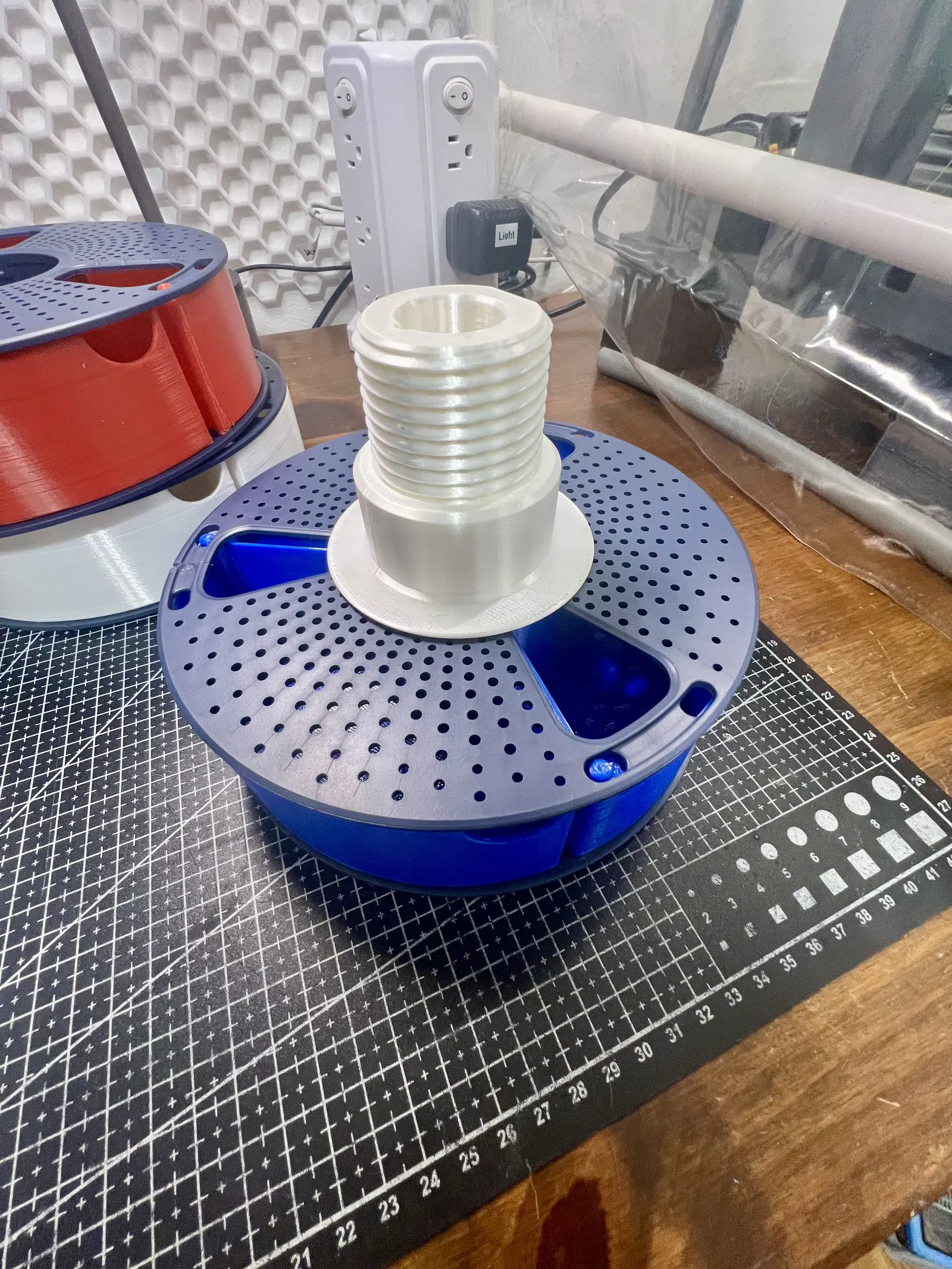 - Con screw dài (130mm) đi kèm thực tế có thể stack 3 cuộn lên nhau nếu in thêm 2 ring.
