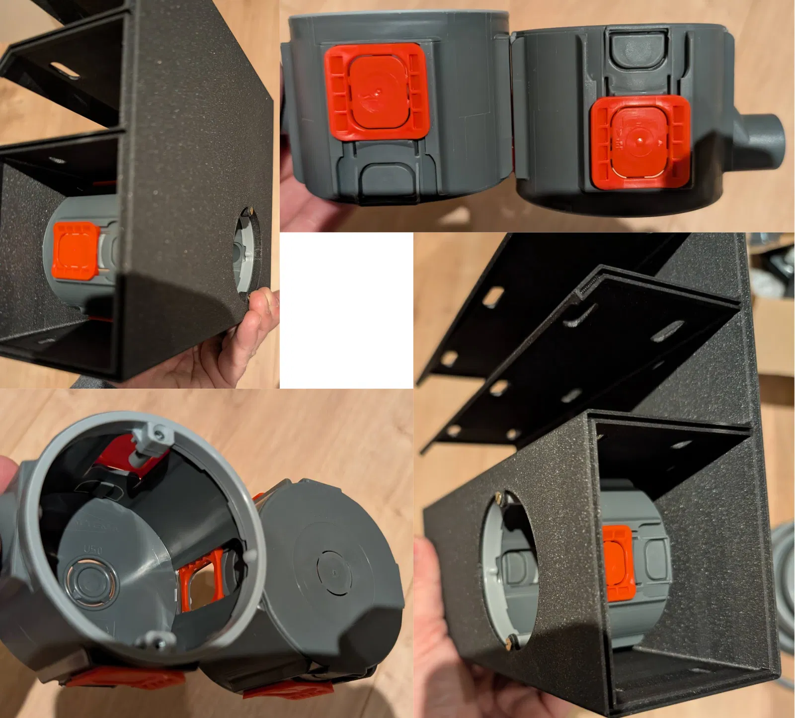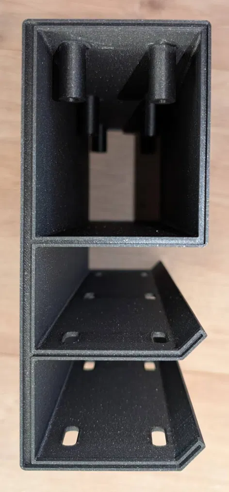 Hệ khay đi dây này được thiết kế riêng cho 3D printing. Gần như mọi thứ đều có thể in mà không cần support. Các phần cho ngàm kẹp màn hình là những chi tiết duy nhất cần support. Bạn có thể phối nhiều chiều dài khác nhau cho đúng nhu cầu và dùng chốt nối (connector pins) để canh thẳng hai khay với nhau. Vì không phải máy in nào cũng có cùng dung sai, mình có cung cấp nhiều phiên bản với mức “free play” khác nhau để bạn chọn cái khít nhất. Với Prusa XL của mình, mình dùng free play 0.1mm cho connector pins và 0.05mm cho end caps. Free play 0.05mm cho end caps giúp nắp chụp đủ chặt để trượt vào mà không cần keo hay băng keo để giữ.