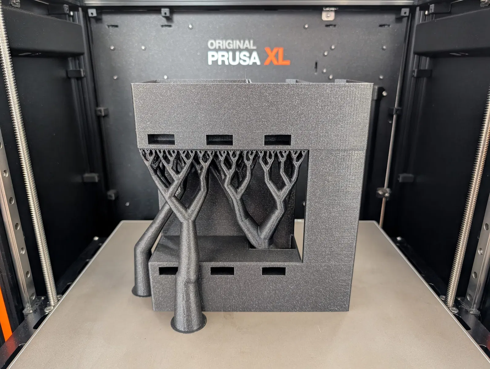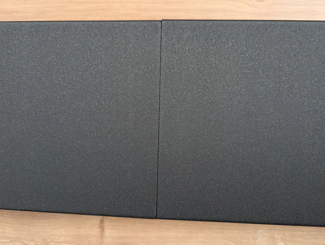 Nếu bạn muốn bề mặt/ngoại hình đồng đều, quan trọng là in cùng một speed profile và cùng thiết lập stealth! Mình quyết định bật stealth vì có vài bản in mất khoảng 24 tiếng, và nếu không bật stealth thì tiếng máy in có thể làm mình thức giấc ban đêm. Mình in toàn bộ bằng filament Prusament galaxy black và nhận ra: in với structural profile (chậm) thì bản in trông tối hơn, bóng hơn và thấy vân layer rõ hơn so với khi in bằng speed profile — speed profile cho bề mặt lì (matt) và layer ít thấy hơn (cũng xem ảnh hai khay đặt cạnh nhau với hai “màu” khác nhau). Cá nhân mình thích kiểu matt hơn, nên mình chọn speed profile (lại còn in nhanh hơn) và bật stealth.