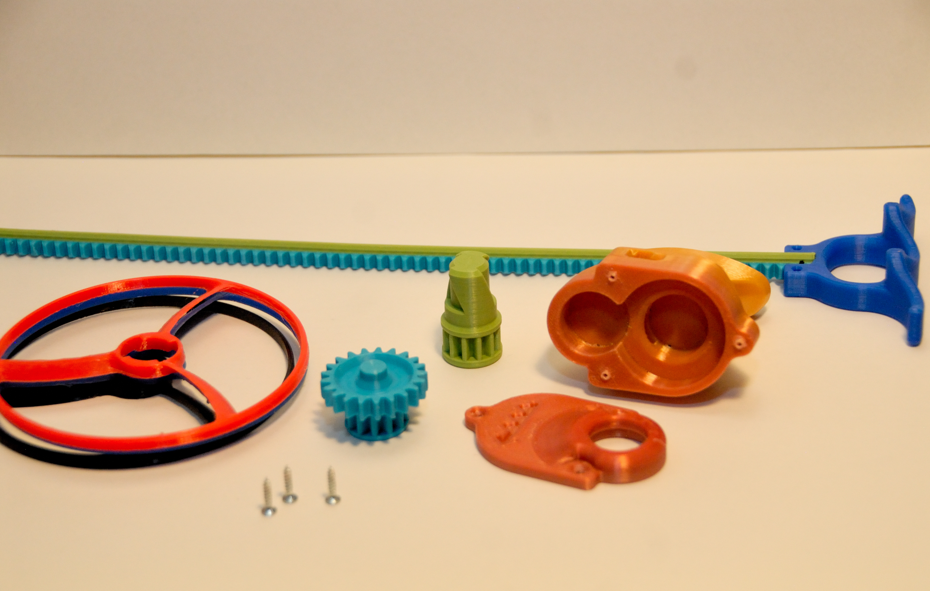 Bạn sẽ cần 3 con ốc 2.5x13mm, hoặc có thể dùng đoạn filament rồi hơ chảy để cố định. Bạn cũng cần dùng một đoạn filament ở gear rack để làm chốt/điểm nối.