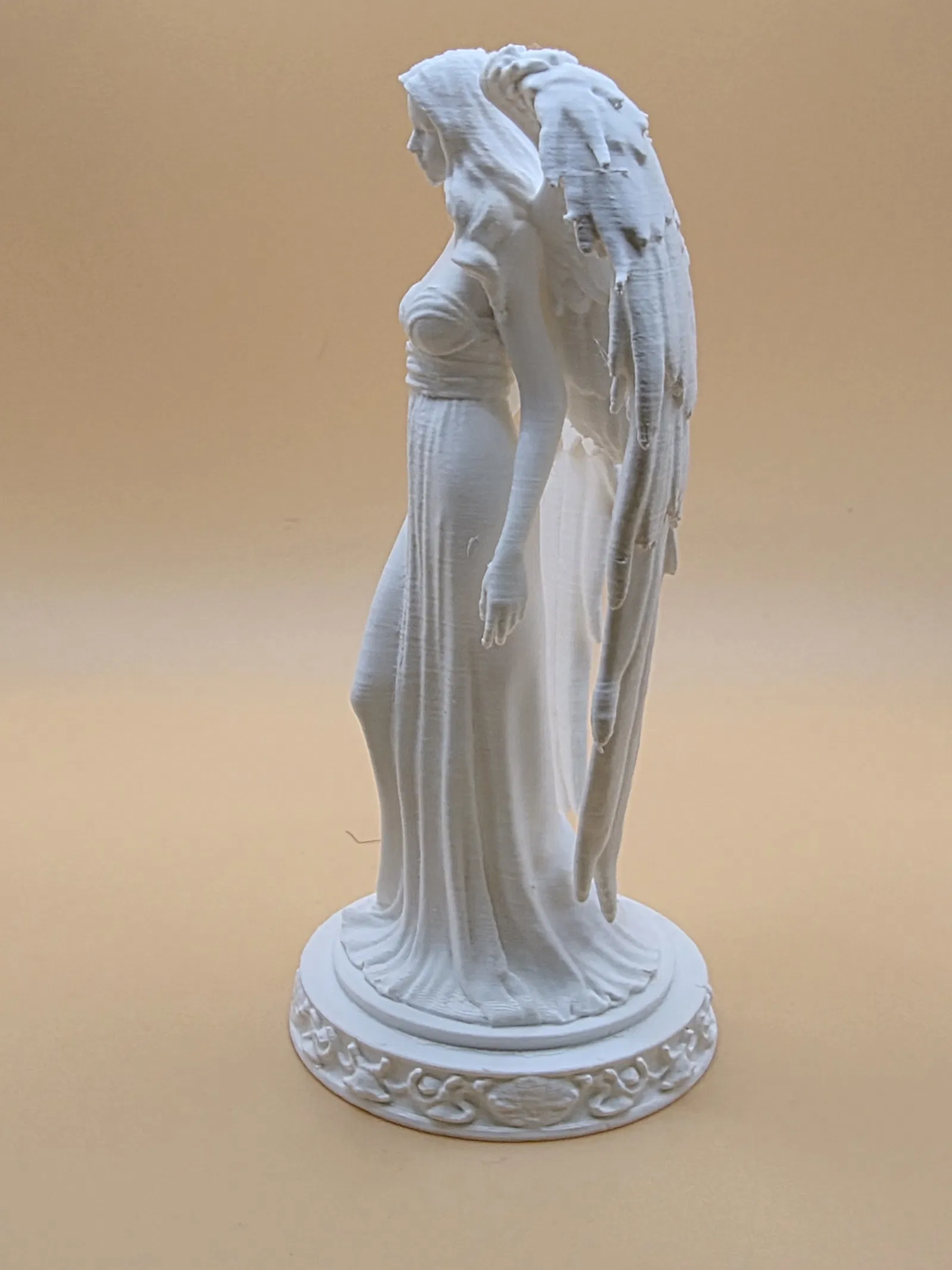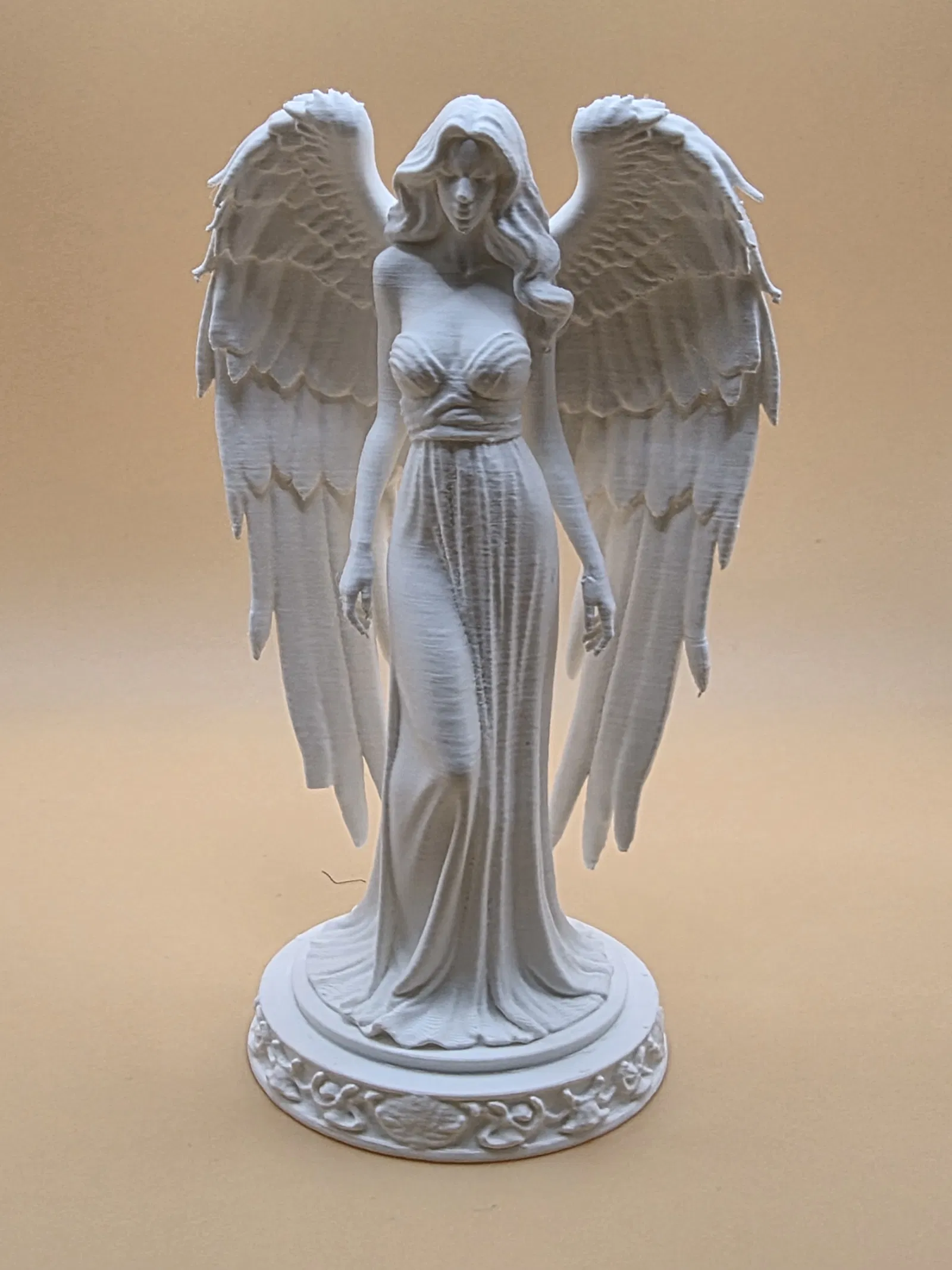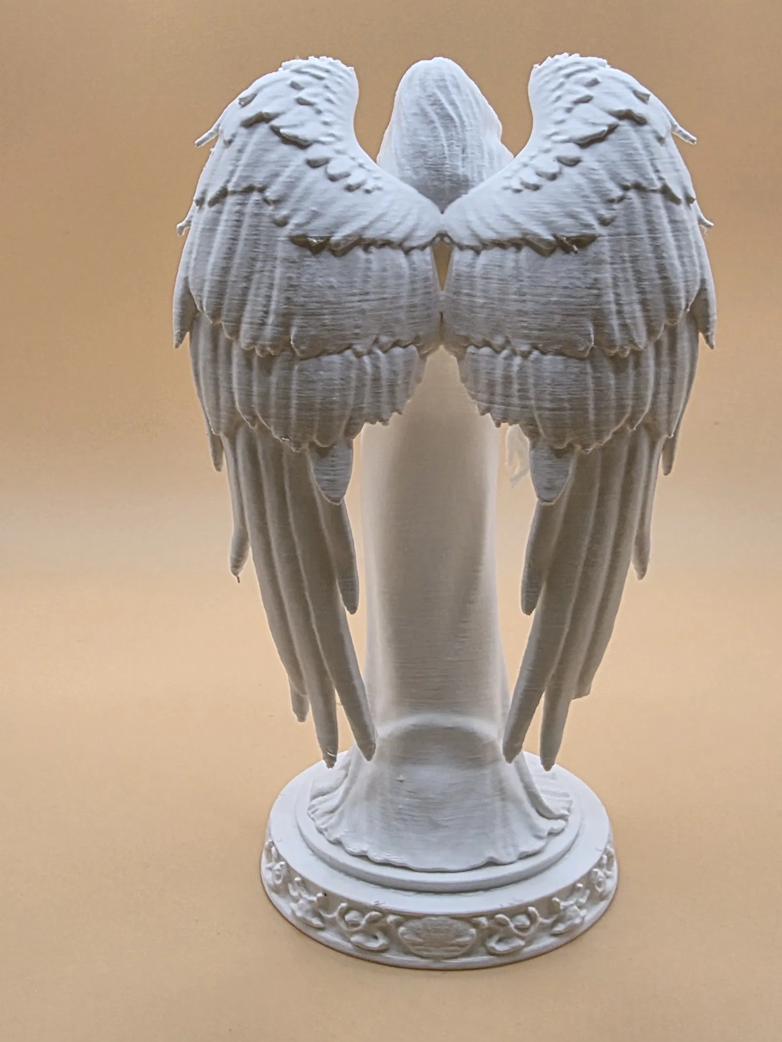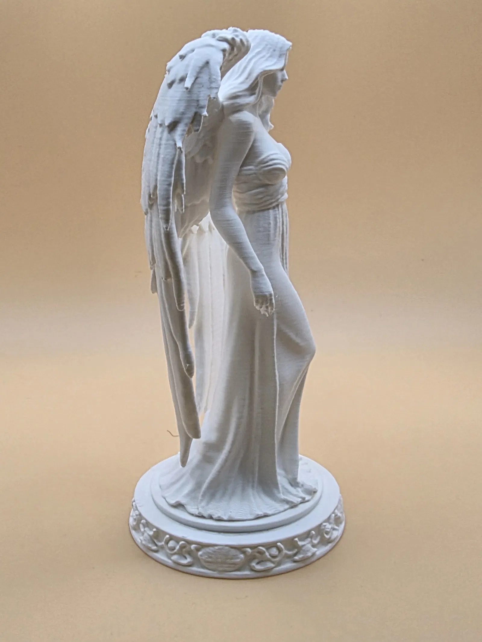 Bức tượng “Andělský strážce klidu” là nhân vật có cánh với tóc dài bay nhẹ, đôi cánh chi tiết và bệ hoa văn trang trọng. Phù hợp làm trang trí, biểu tượng tinh thần hoặc món sưu tầm; in 3D đẹp cả khi phóng lớn.