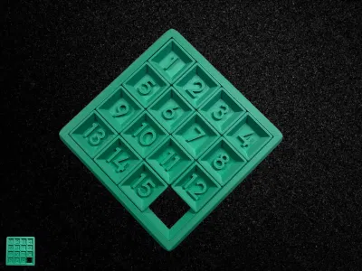 Trò xếp số trượt 4x4 nhỏ gọn với 15 ô vuông trượt trong khung. Chỉ cần trượt các mảnh để đưa các con số về đúng thứ tự. Dễ in 3D, chơi đã tay và rất hợp để rèn tư duy.