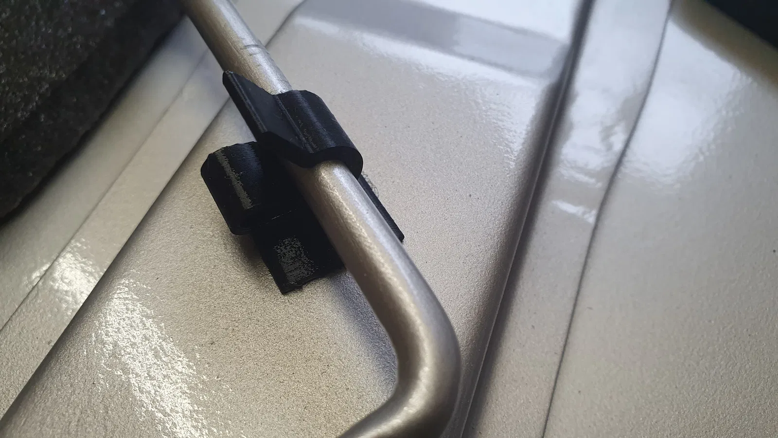 Kẹp nhựa in 3D thay cho kẹp kim loại giữ thanh chống nắp capo của Classic Mini (CZH209). Lắp bằng cách cài vào khe rồi xoay 90°; in PETG, 4 walls, có support để bền và chịu nhiệt.