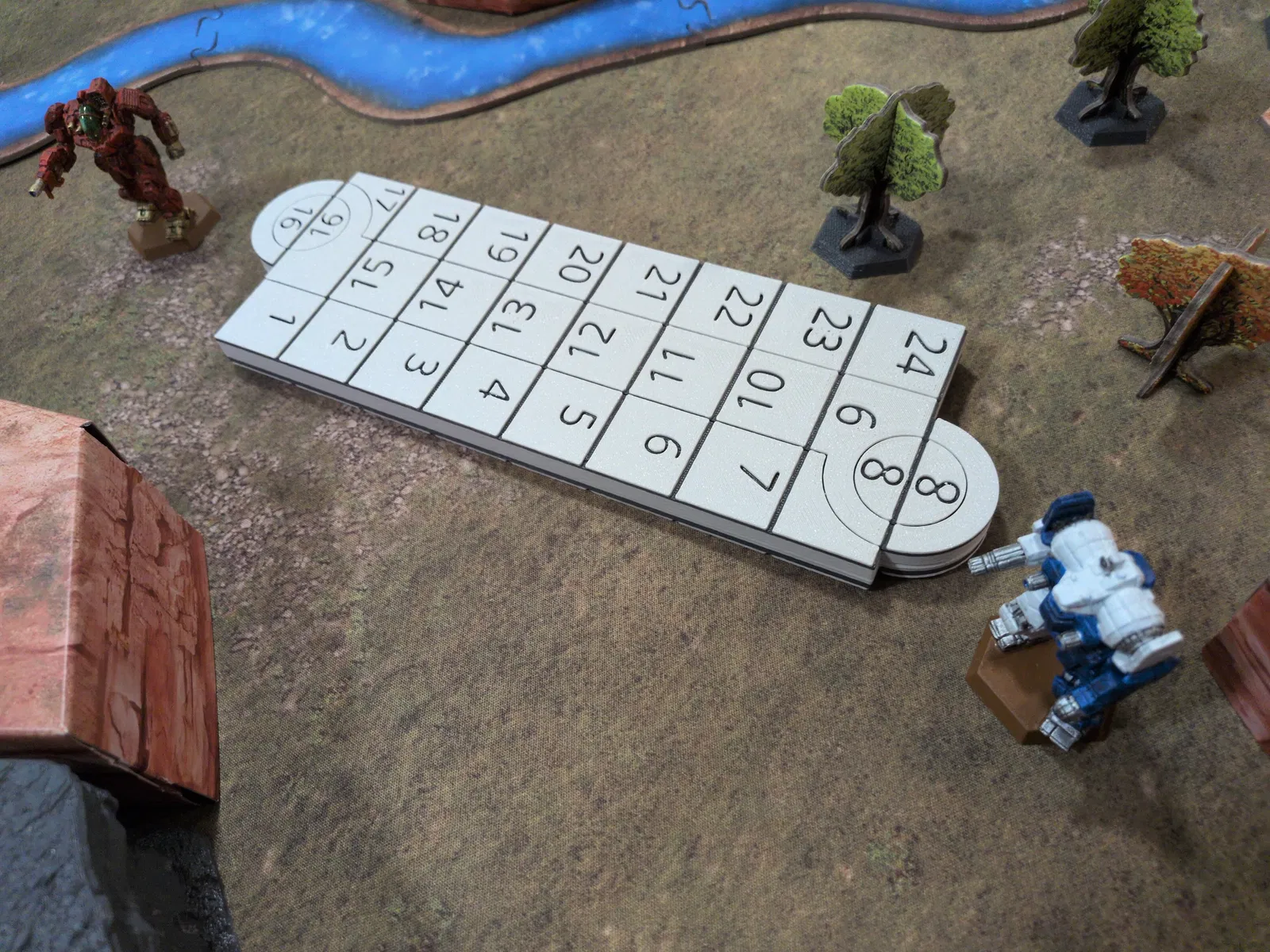 Thước gập 24 inch này là một công cụ rất tiện để chơi Battletech: Alpha Strike, nhưng mình thấy mẫu gốc thiếu vạch số rõ ràng và các vạch chia bước khá mờ. Ban đầu mình thử dùng bút Edding để tự ghi số lên, nhưng kết quả không được như ý. Cuối cùng mình quyết định remix lại model 3D để thêm số và làm thước 2 mặt cho dễ dùng hơn.