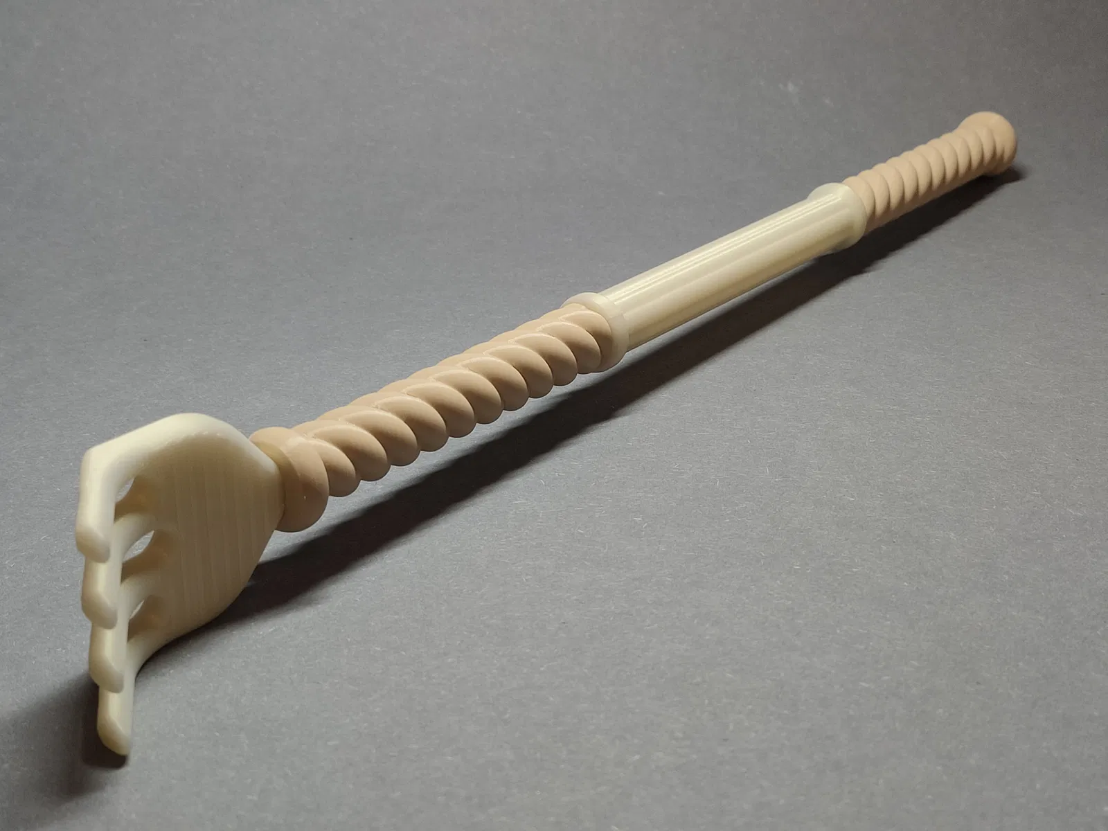 Back Scraper trang trí giúp gãi lưng khi bị ngứa, gồm 4 phần: Claw, Claw holder, Middle và Handle. Khuyến nghị in tối thiểu 3 perimeters, dùng filament bền, brim rộng cho chi tiết cao và mài kỹ đầu claw.