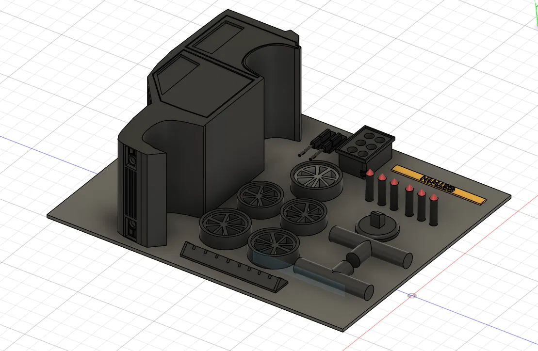 Mô hình 3D Land Rover Defender bọc giáp đã được chỉnh sửa, có bệ phóng tên lửa, lưỡi cày và 2 khẩu súng trường. Thiết kế bằng Fusion 360 trong hackclub construct 2025; file in được tách riêng.