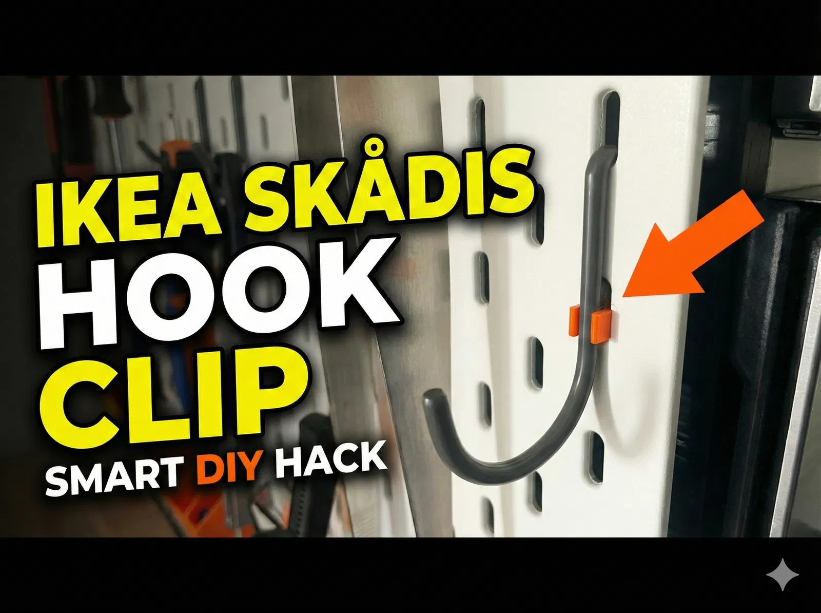Kẹp khóa nhỏ giúp cố định móc IKEA Skadis trên pegboard, tránh móc bị nhấc lên hoặc rơi ra khi lấy/treo đồ. In tốt với PLA; muốn bền hơn nên dùng PETG hoặc vật liệu dẻo, chắc khác.