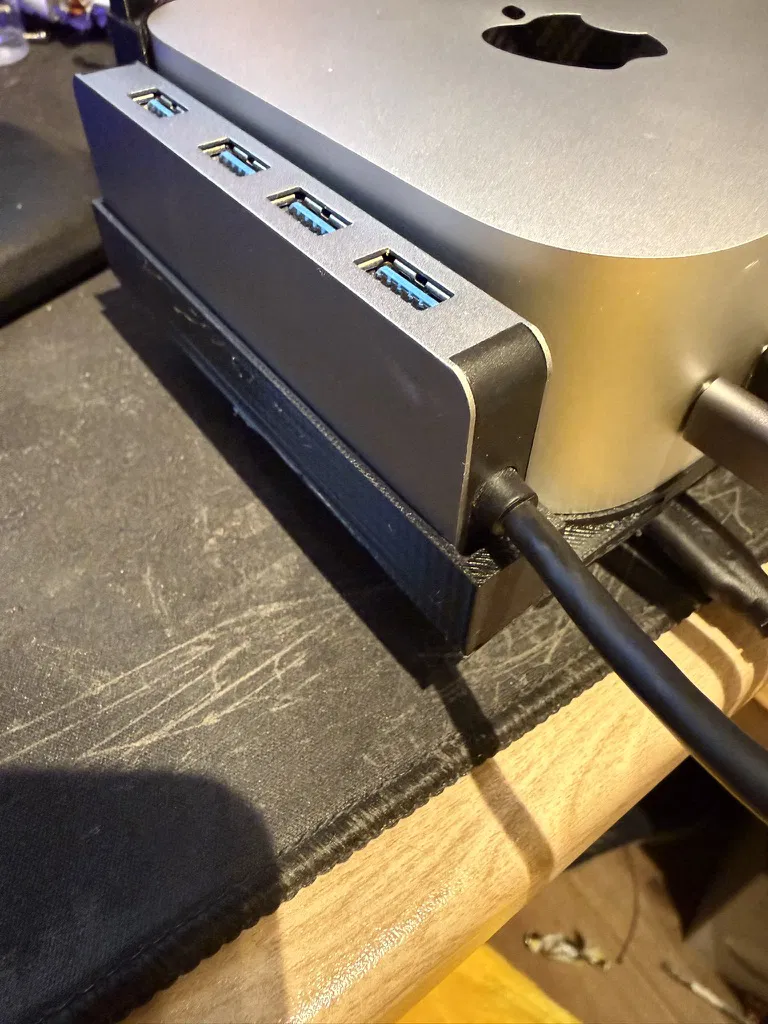 Bản remix từ thiết kế gốc của Boumi: tăng độ dày chân đế và thêm khay giữ USB hub. Phù hợp hub dày tối đa 12MM, dài 111MM. Có kèm file STEP để dễ chỉnh sửa phần holder của stand.