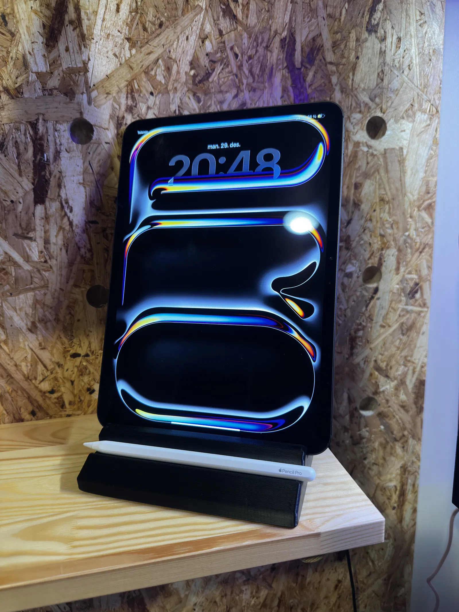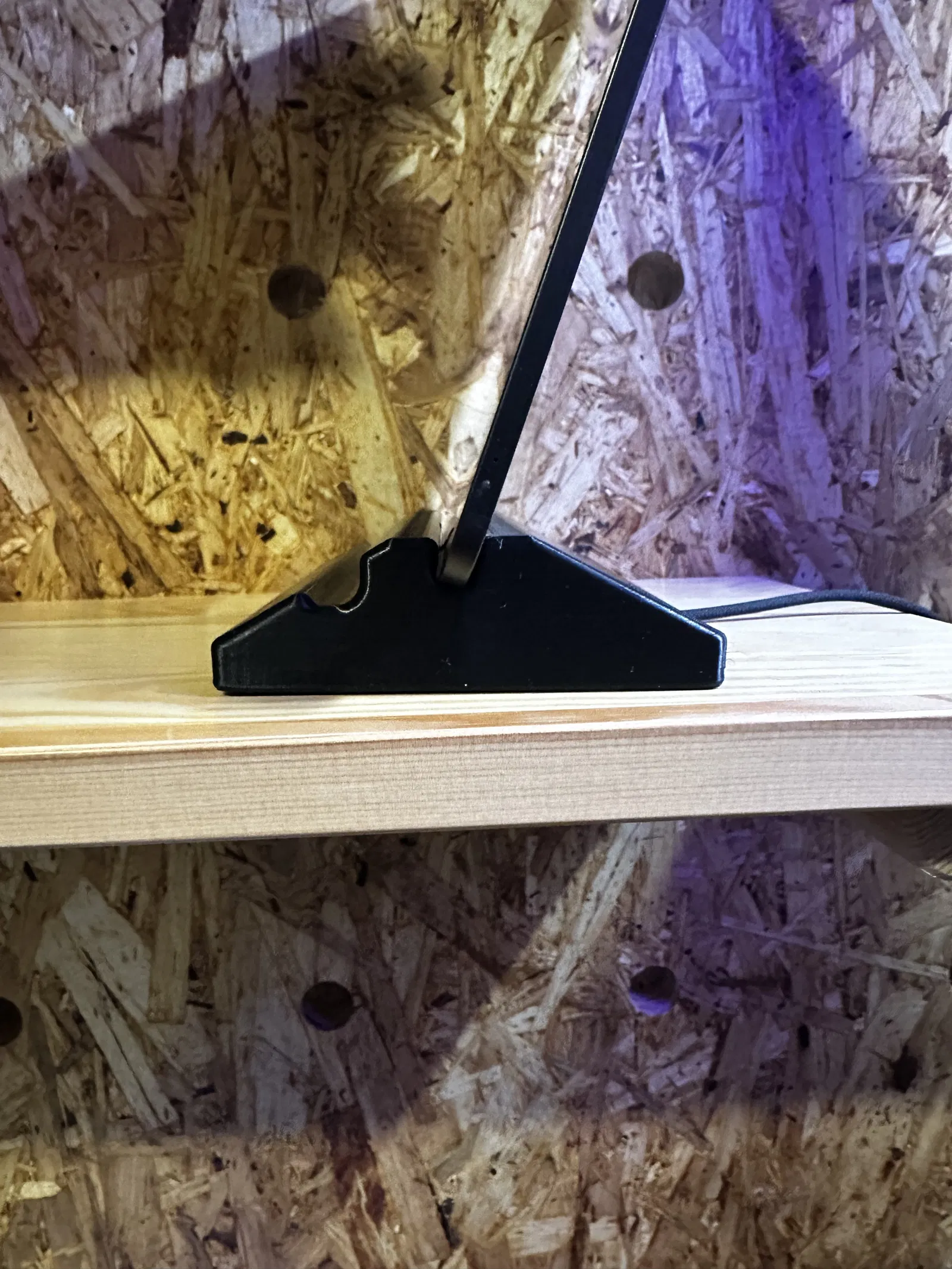Một mẫu giá đỡ tablet kiểu tối giản, có kèm một kệ nhỏ để đặt bút stylus. Thiết kế dành cho nhu cầu dùng hằng ngày trên bàn làm việc và xem nội dung giải trí. Góc nghiêng giúp đứng vững, mà vẫn giữ được vẻ gọn gàng, đơn giản.