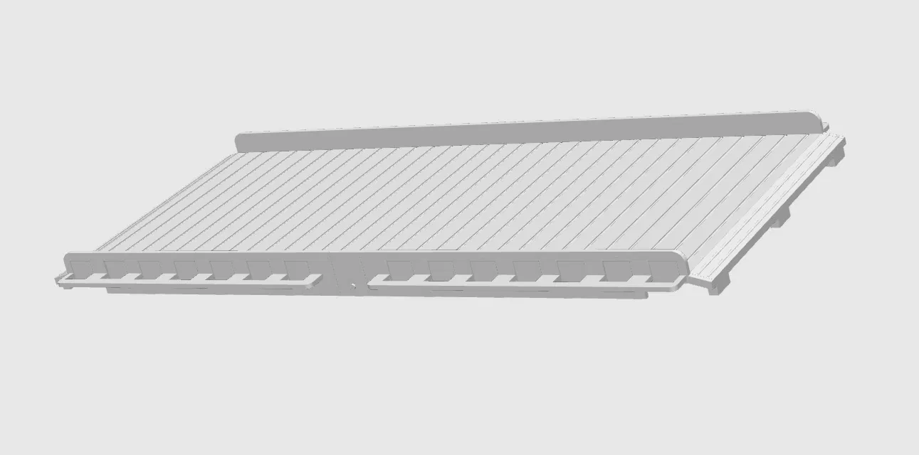 Phiên bản long ramp cho Rokenbok được đơn giản hóa dựa trên đo đạc từ chi tiết gốc. Đã sửa lỗi mẫu cũ dài hơn ~4mm, giảm độ dày deck và đề xuất split bằng dovetail ngang để in đứng cho tối ưu.
