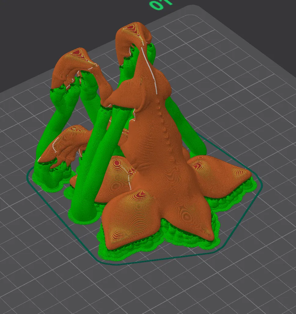 Mẫu Demodog trong series Stranger Things. Nên in lộn ngược do số lượng support hạn chế; layer thickness 0.2 là đủ và dùng infill 15% để tăng độ cứng khi in.