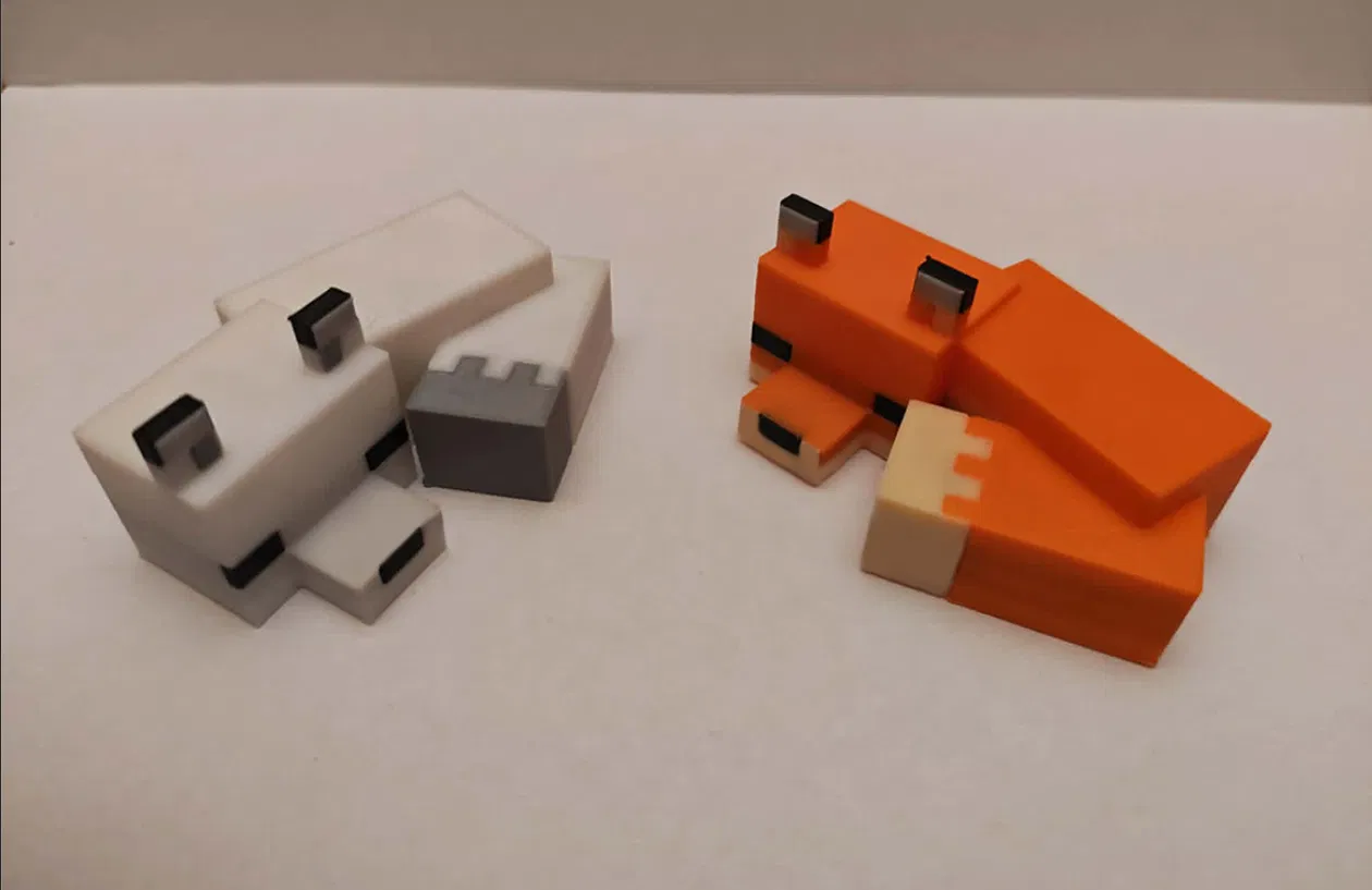 Mẫu cáo trong game Minecraft (minnecraft fox) theo phong cách pixel/cube. Mình in trên A1 mini bằng PLA+ với layer height 0.1 mm và có dùng AMS để in đa màu.