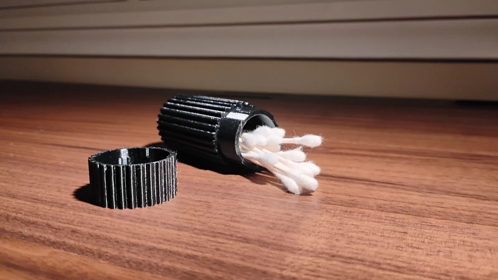 Bên trong được canh kích thước chuẩn cho tăm bông (cotton swab) size tiêu chuẩn, còn bên ngoài có bề mặt gân dọc kiểu tactical giúp cầm nắm chắc tay. Một nâng cấp đơn giản, bền, và cảm giác cơ khí rất đã cho thói quen vệ sinh khi đi xa.