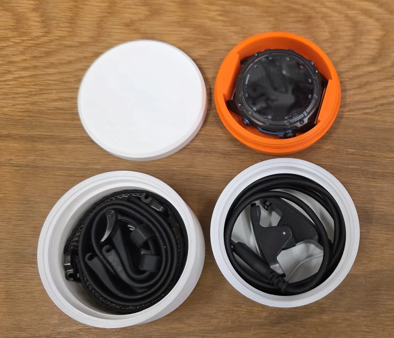 Hộp đựng dạng case cho Garmin MK3i 51mm, kèm chỗ để các loại dây đeo và cáp sạc. Thiết kế in 4 phần, không cần support; có thể dán mút 1mm trong nắp để chống rung lắc.