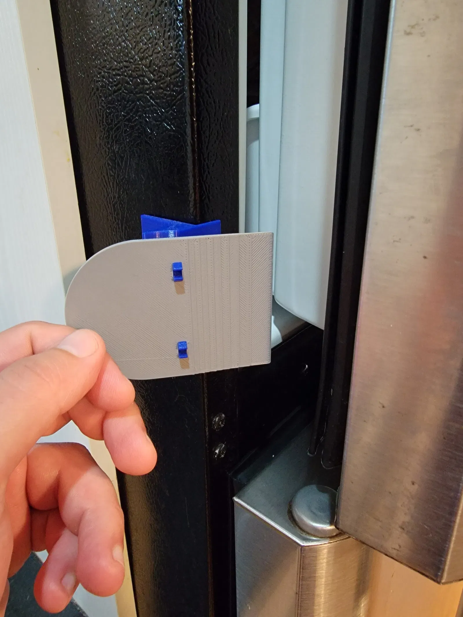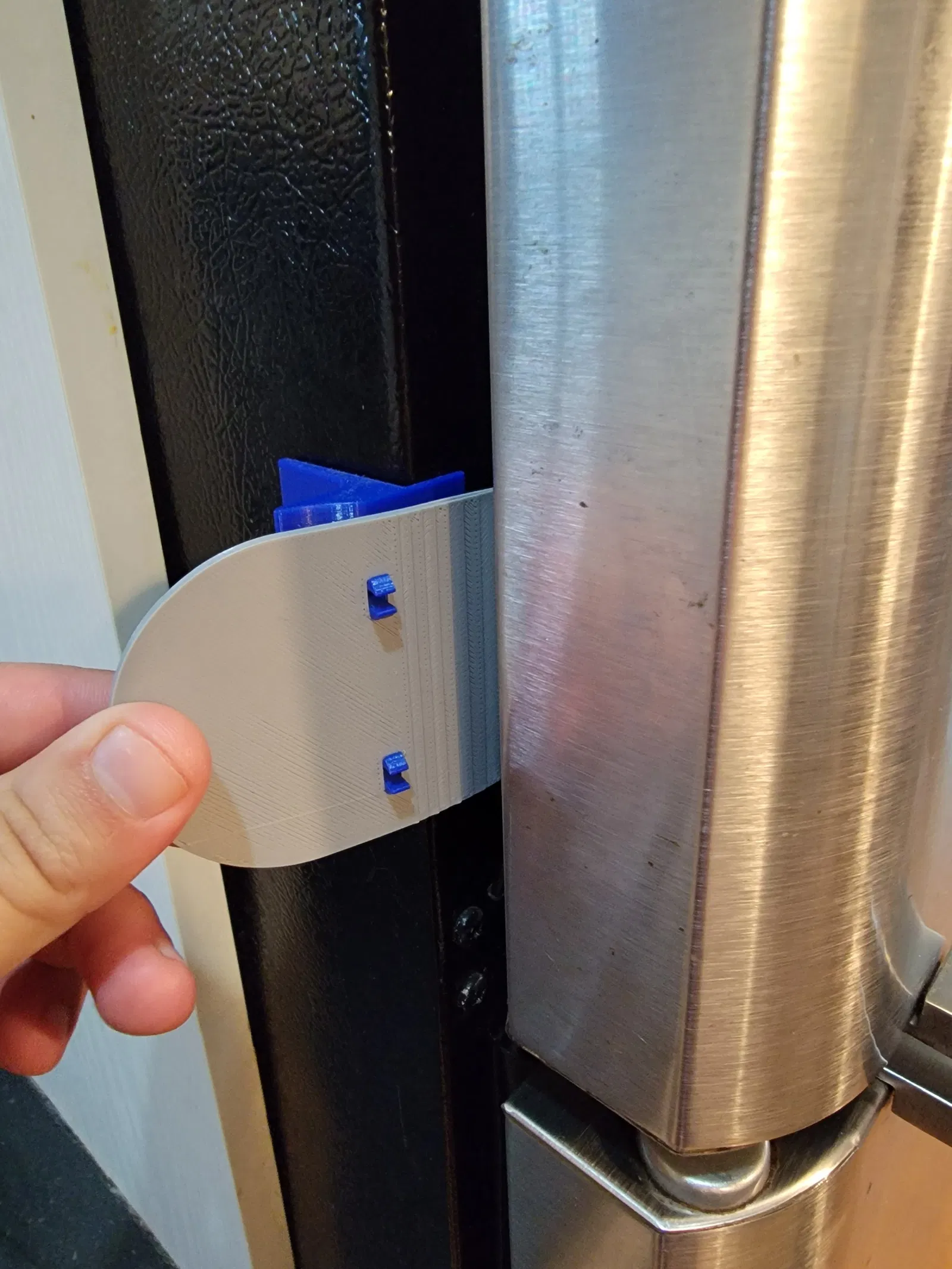 Công cụ này là một tập tin đính kèm để mở cửa tủ lạnh. Nó cần băng dính đôi để được đặt trên tủ lạnh.