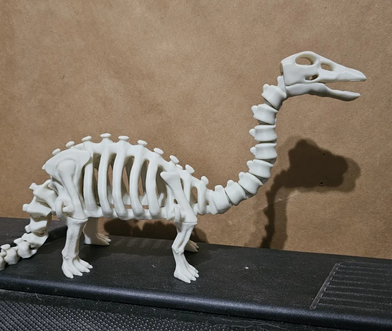 Bộ xương khủng long articulated, sọ tháo rời, kèm 2 kiểu sọ Brontosaurus/Apatosaurus và Camarasaurus. Dễ in, thường không cần supports. Có hướng dẫn chỉnh độ khớp ball-socket ở cổ.