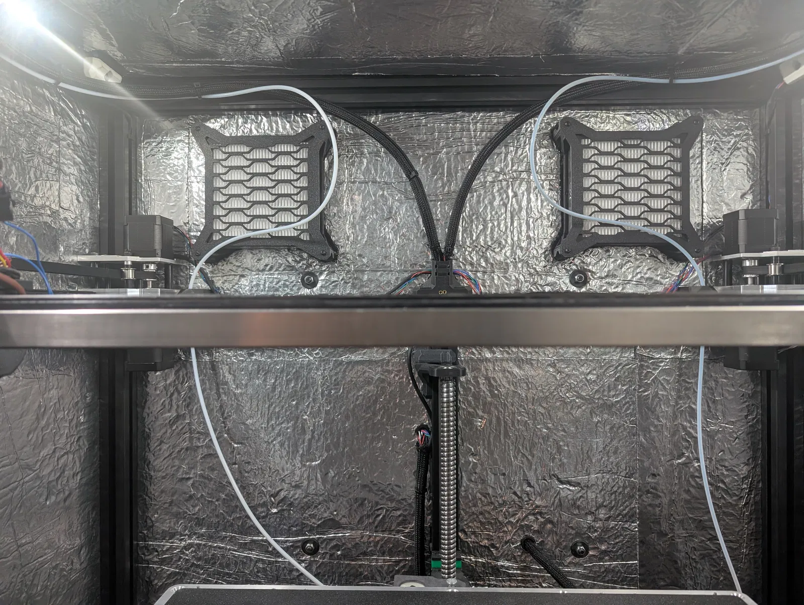Quan trọng hơn là hệ thống mounting cho bản update này. Khi đi theo hướng dùng loại nhỏ hơn, nó fit chuẩn để gắn 2 cụm như vậy (mình dùng v-core 4 bản lớn) trên back panel và sẽ thổi khí sạch vào khu vực làm việc bên trong máy. Mình cũng sẽ upload thêm một thiết kế nữa mà mình nghĩ ra sau khi lắp xong hết.