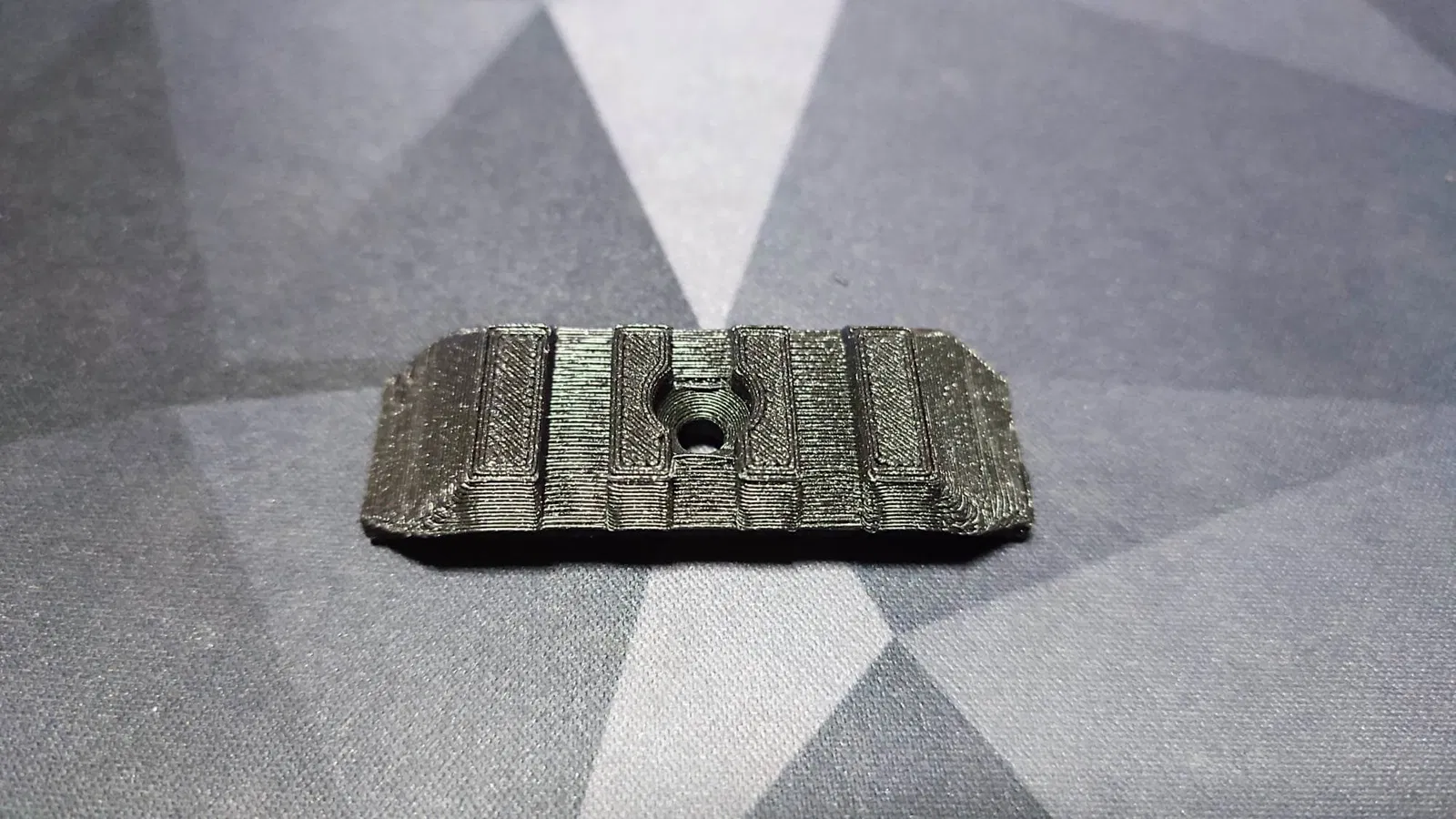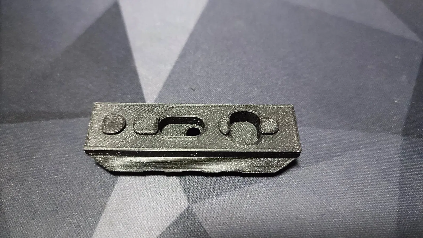 Mẫu ray KeyMod dài 35mm cho súng airsoft để gắn phụ kiện. Khuyến nghị in 0.2mm, brim 10mm; in theo mặt tiếp xúc với súng để bề mặt đẹp hơn. Có bản đơn giản và mẹo dùng sacrificial bridging cho phần lỗ.
