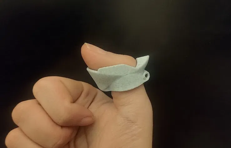 Mẫu này được tạo ra chỉ dựa trên các ảnh đính kèm làm tham chiếu; mình chưa từng thấy hiện vật thật ngoài đời. Vì vậy mình không biết kích thước thực tế của món đồ thật. Model được scale để vừa ngón cái của mình. Phần hẹp của lỗ xỏ ngón cái rộng 20mm.