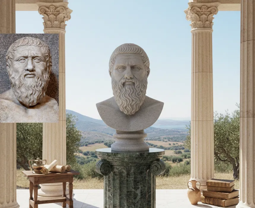 Platon đặc biệt nổi tiếng với các đối thoại triết học, nơi ông bàn về những chủ đề lớn như công lý, tri thức, chính trị, cũng như bản chất của thực tại. Tượng bán thân này nhằm bắt được hình ảnh vượt thời gian của nhà tư tưởng—biểu tượng của tư duy trừu tượng và nền tảng của triết học phương Tây.