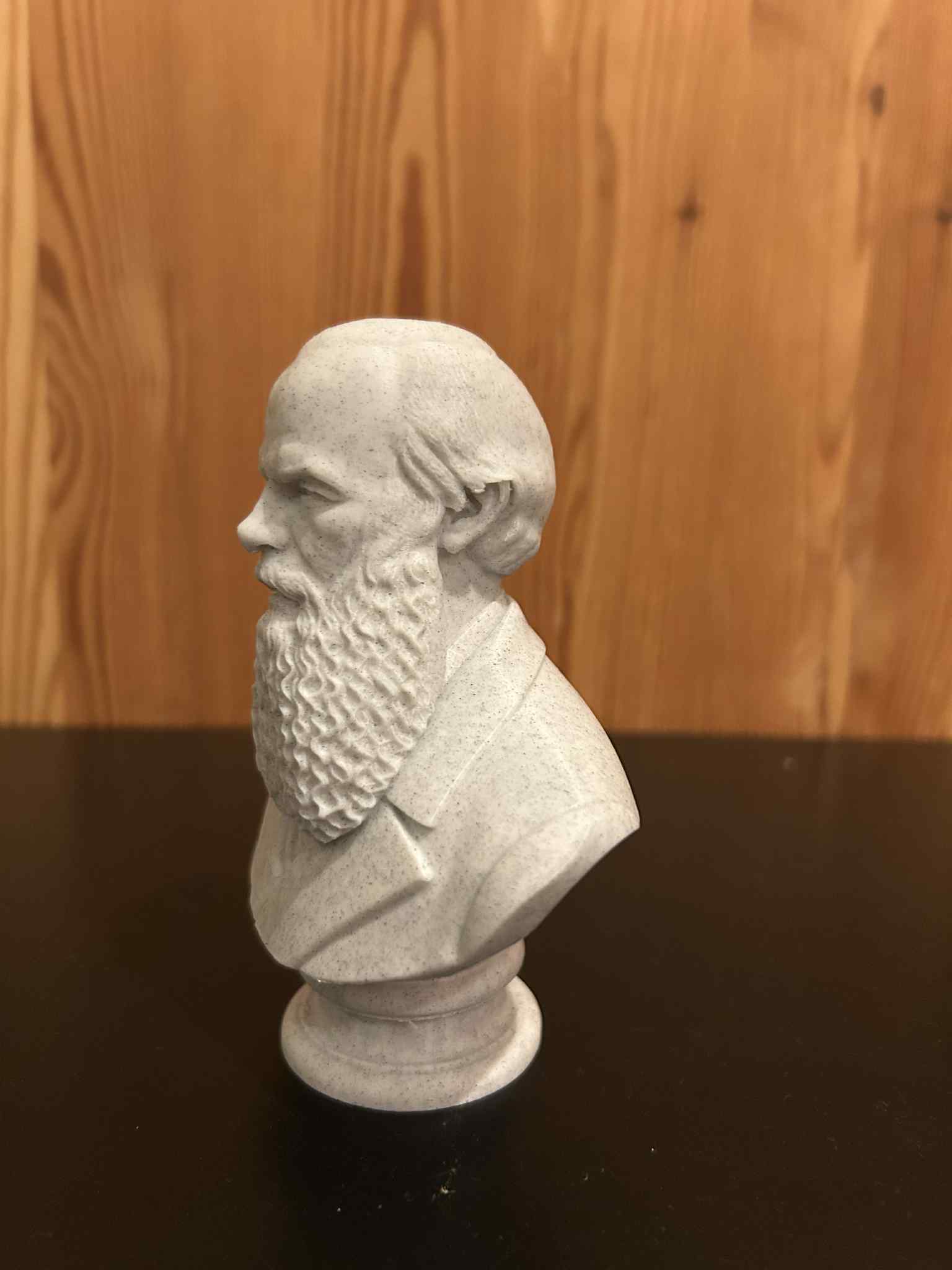 Mẫu bust khắc họa Fyodor Mikhailovich Dostoevsky theo bức ảnh nổi tiếng nhất của ông. Tỷ lệ gương mặt chuẩn, nét nhìn nội tâm, trán cao và râu dày được nhấn mạnh, tối ưu khối rõ ràng để in 3D.