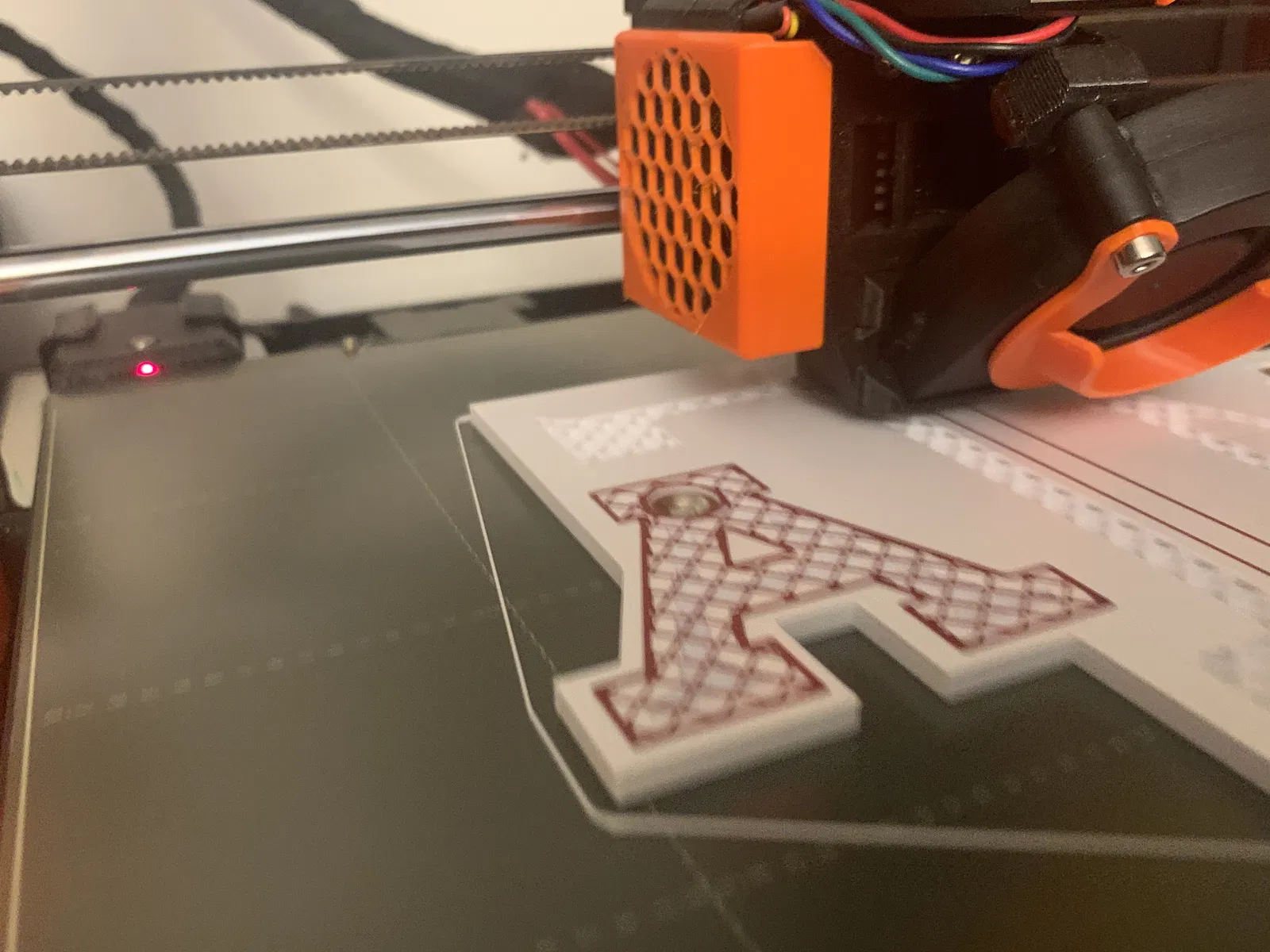 Mình đã in một nam châm Texas A&M từ một user khác nhưng chỉ có hai lỗ gắn nam châm nên không dùng được; bản in nặng quá nên hít không nổi.