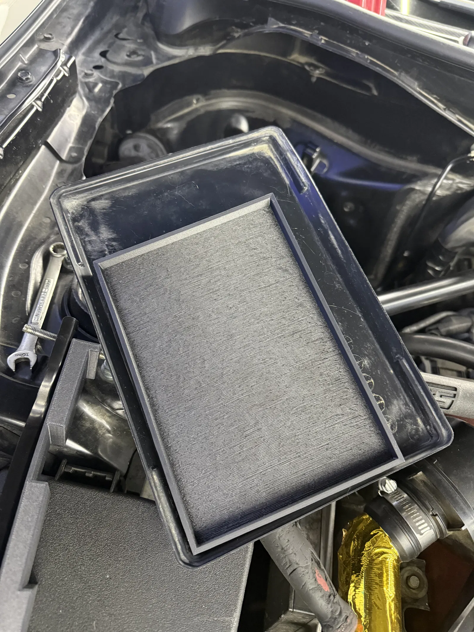 Khay pin (battery tray) và ngàm kẹp giữ (hold down) adapter cho loại pin này. Dùng cho BRZ/86/FRS, mình không chắc có hợp cho đời 2 (2nd gen) không. Bộ này giúp giảm chút trọng lượng mà vẫn xài pin ổn cho đi hằng ngày quanh năm. Cái hold down rất chắc khi bắt ốc xuống, pin không thể xê dịch chút nào.