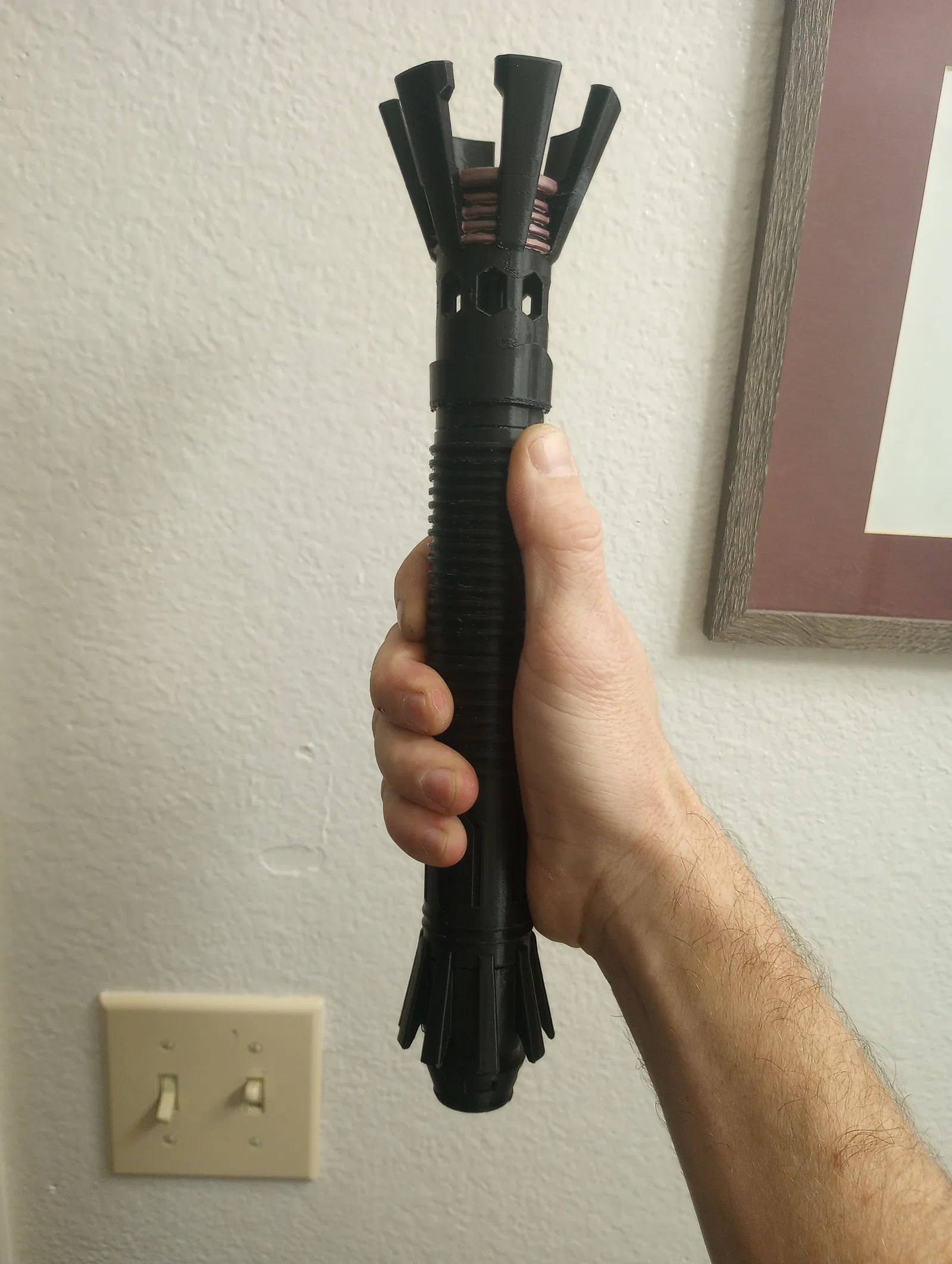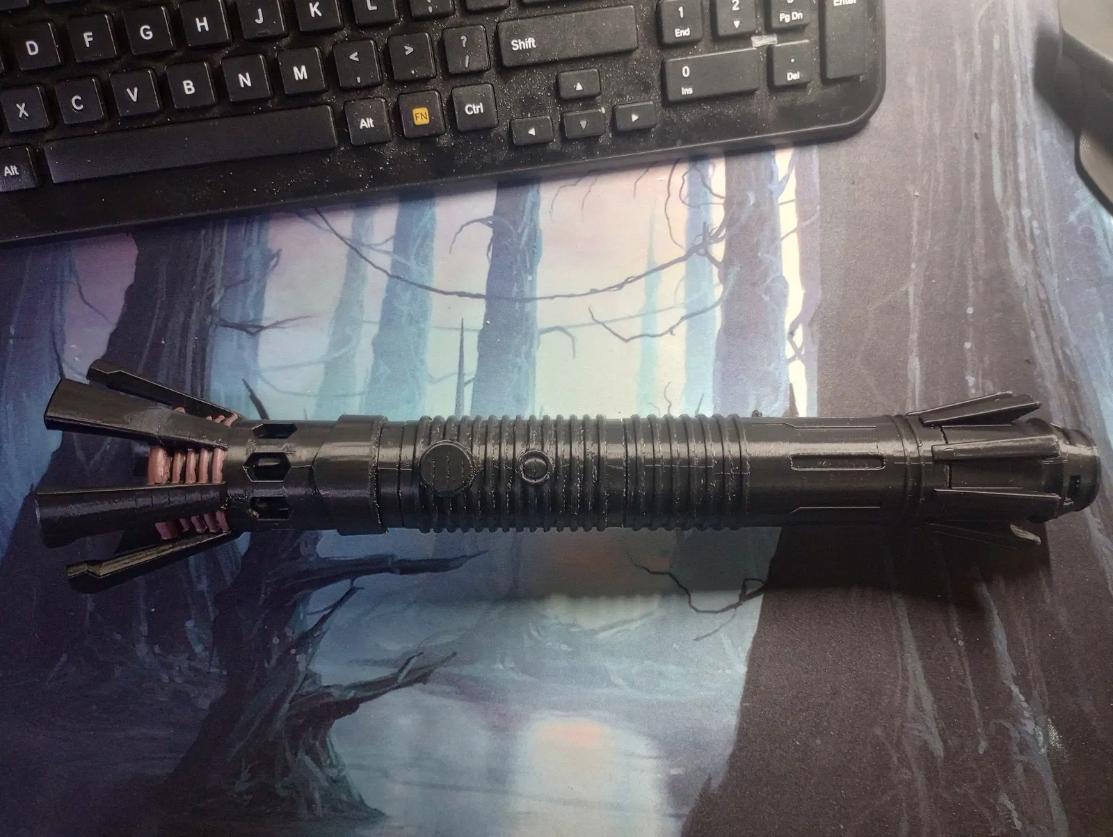 Phe Bóng Tối gia nhập series thiết kế chuôi lightsaber nguyên bản của mình. Mình nhắm tới phong cách “hậu Order 66”, như một Jedi đang lẩn trốn tự ráp từ mấy món phế liệu. Nhưng càng làm thì nó lại “tự nói” với mình đây rõ ràng là vũ khí của Sith. Mẫu được chia khúc để dễ in hơn, nhưng mục tiêu là dán cố định vĩnh viễn; tuy vậy nếu bạn muốn tháo rời thì không cần keo vẫn có thể dùng như một món prop hoạt động ổn.