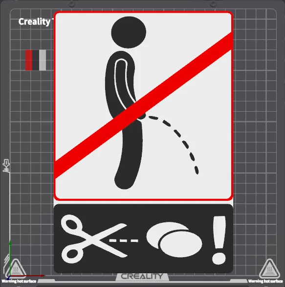 Mẫu bảng “Cấm đi tiểu” dạng logo/poster treo tường. Có 2 phiên bản: cho hệ multi-color (AMS/CFS/MMU) và bản đổi màu theo layer nên không cần multi-color. File sẵn sàng để in.