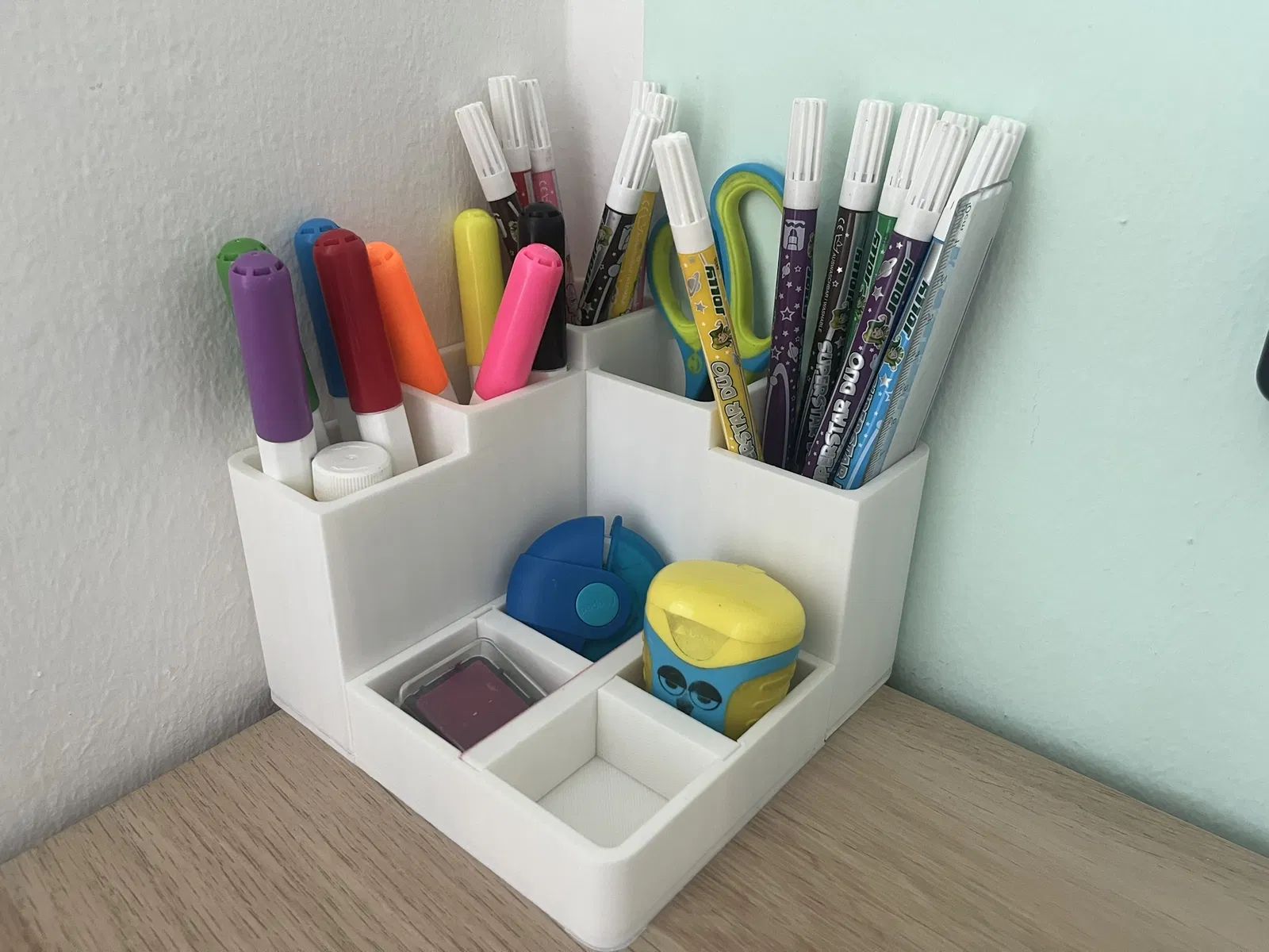 Khay sắp xếp bàn làm việc gọn gàng, có thêm một ngăn insert rời tháo lắp được. Phù hợp để đựng bút và vật dụng nhỏ trên bàn, dễ in với infill 10–15% và layer height 0.1–0.2 mm.