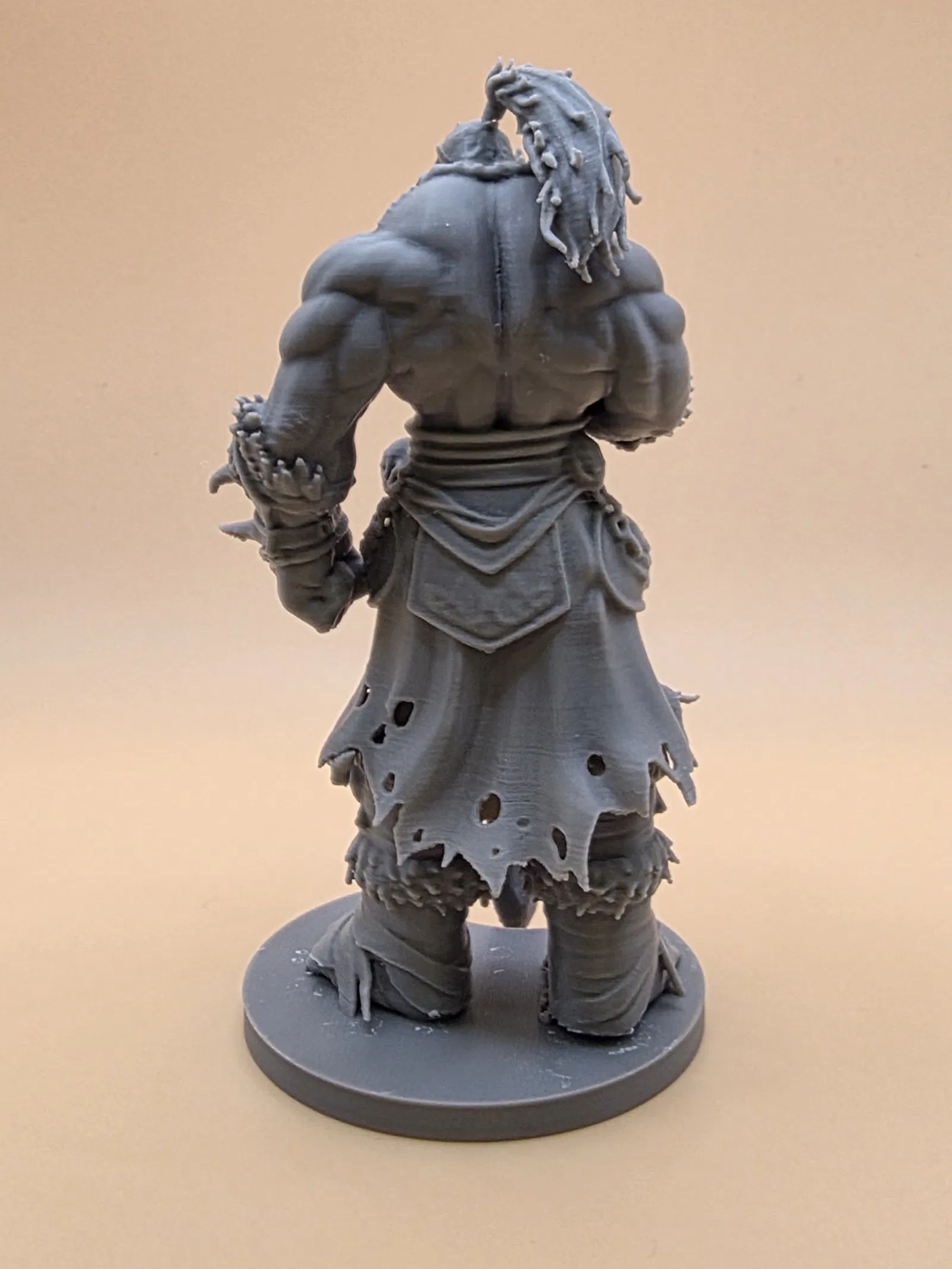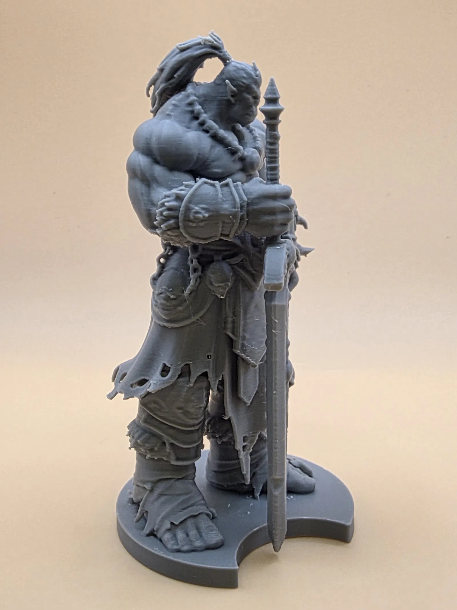 Miniatura fantasy cỡ lớn lấy cảm hứng từ orc trong Warcraft: cơ bắp vạm vỡ, da xanh, phụ kiện bộ tộc và đại kiếm chạm khắc. Tối ưu cho 3D printing, giữ chi tiết tốt khi in ở tỉ lệ nhỏ.