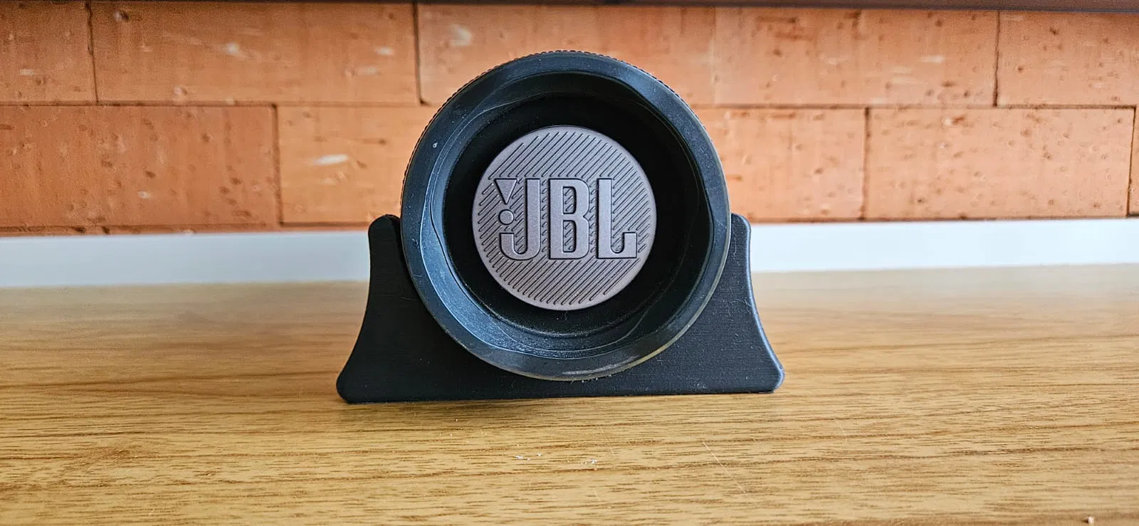 Mẫu stand dành cho loa JBL CHARGE 4, thiết kế để in không cần support. Tham khảo thông số in: Creality K1 MAX, nozzle 0.4 mm, texture plate; vật liệu PLA đen matte, layer height 0,20 mm; 1h 11m, 43,35g filament.