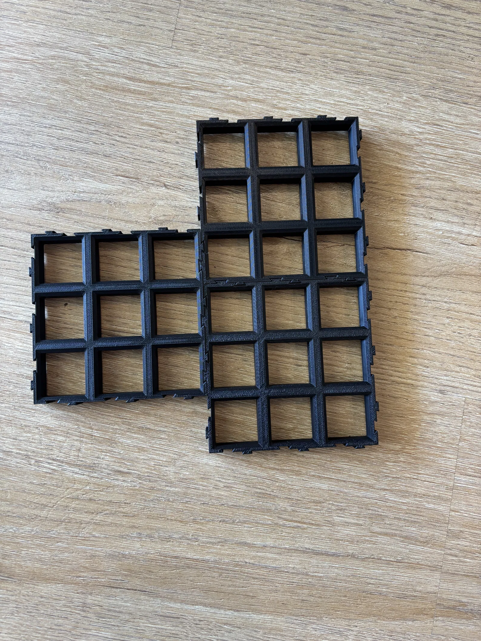 Lấy cảm hứng từ grid liên kết (interlocking) của họ, mình làm ra hệ Slotlock. Hệ này giải quyết hết các vấn đề trên! Giờ bạn có thể tạo grid với bất kỳ kích thước và hình dạng nào bằng cách dùng tile 1x1 thay vì 3x3! Các grid này dễ trượt để ghép lại, dễ tách ra, và còn khóa lại gọn gàng nên bạn không lo lỡ tay làm xô lệch cả cảnh.