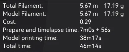 Với thiết lập in của mình, mỗi tile grid 3x3 dùng 17.19g filament và tốn khoảng $0.29 AUD ($0.19 USD). Mức này giả định bạn mua Bambu Basic PLA theo dạng bulk ($17.04 AUD/cuộn, $11.39 USD).