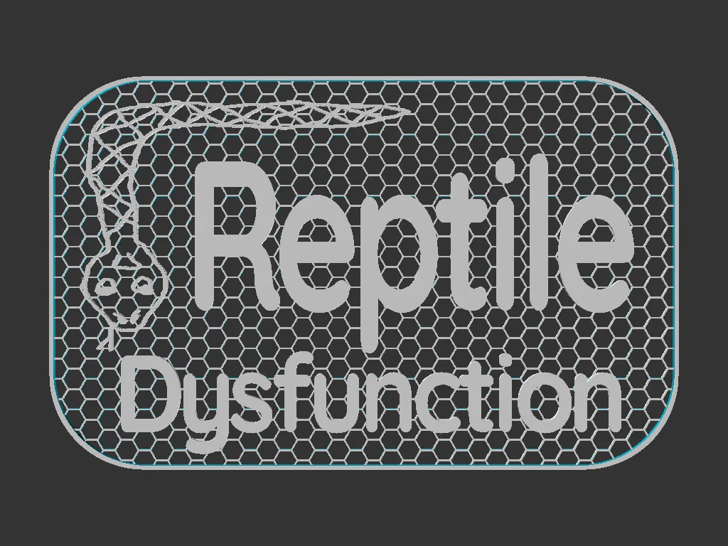 Bảng 100x160mm với hình con rắn mềm oặt và chữ “Reptile dysfunction”. Có cả bản Mesh và Solid để dễ in hơn; nên đổi màu trên 1mm (tham khảo gcode kèm theo).