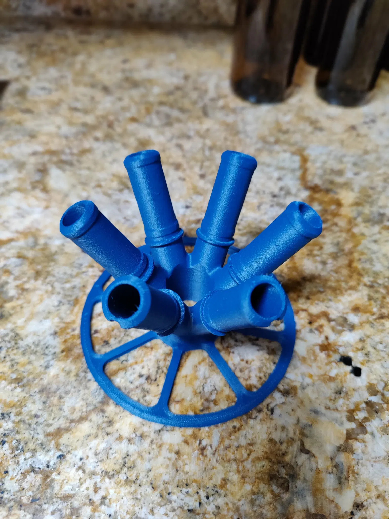 Sau khi bạn đã vệ sinh/khử trùng (sanitize) chai bia, bạn có thể đặt chúng lên cái stand này để cho nước chảy xuống và để khô. Các ống (tubes) trên stand có đường kính 18 mm. Kích thước này vừa với chai 22 oz và gần như tất cả các chai 12 oz mà mình có (ngoại trừ một chai Leffe ngẫu nhiên). Có thể cũng sẽ dùng được cho chai rượu vang.