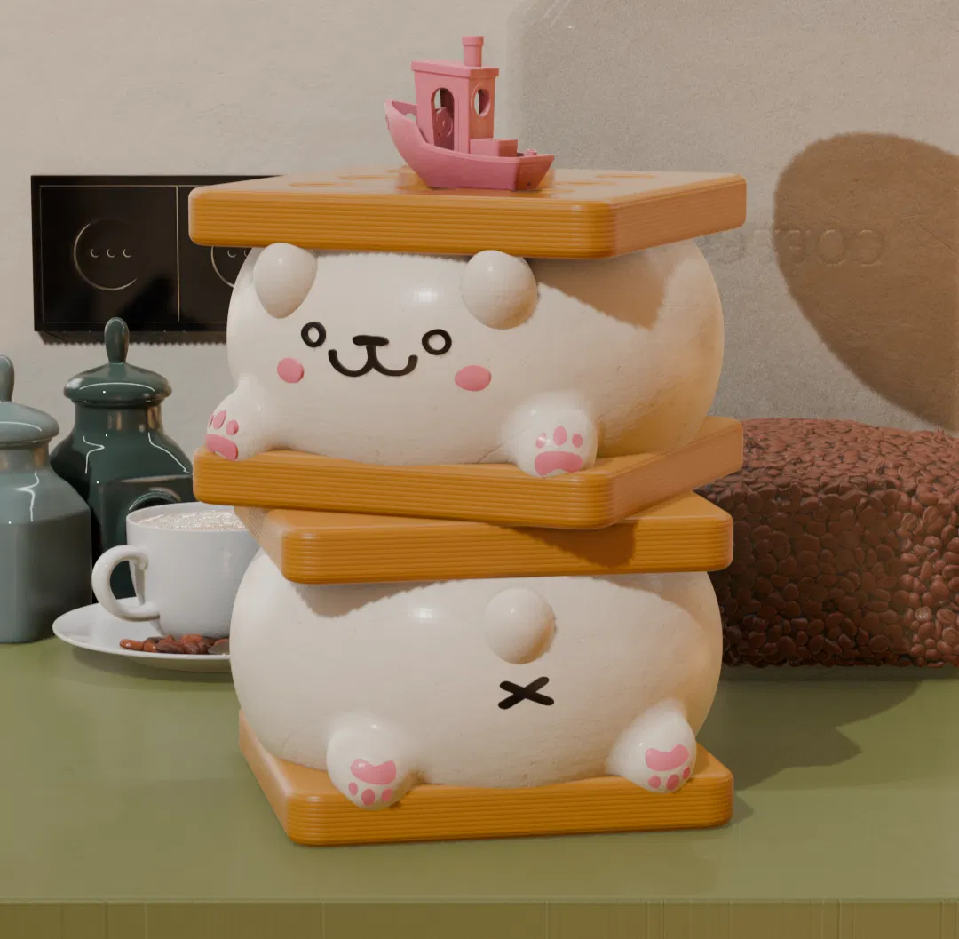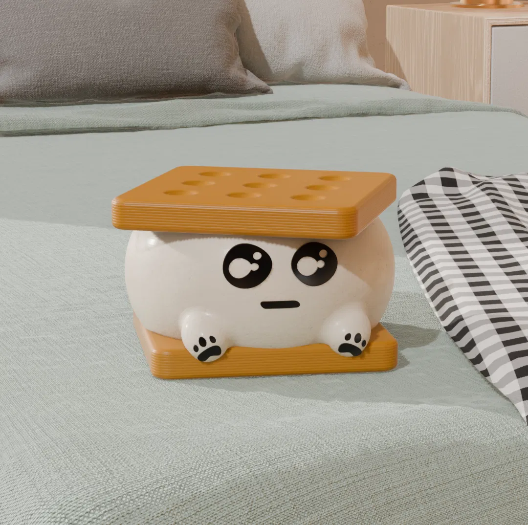 Hộp trang trí dạng marshmallow-animals dùng trong nhà, kích thước rộng 136 mm và cao 84 mm. Thiết kế gồm thân và nắp, có 4 biến thể. Kèm file in màu 4 màu (Extruder1 nâu, Ex2 trắng, Ex3 đen, Ex4 hồng).